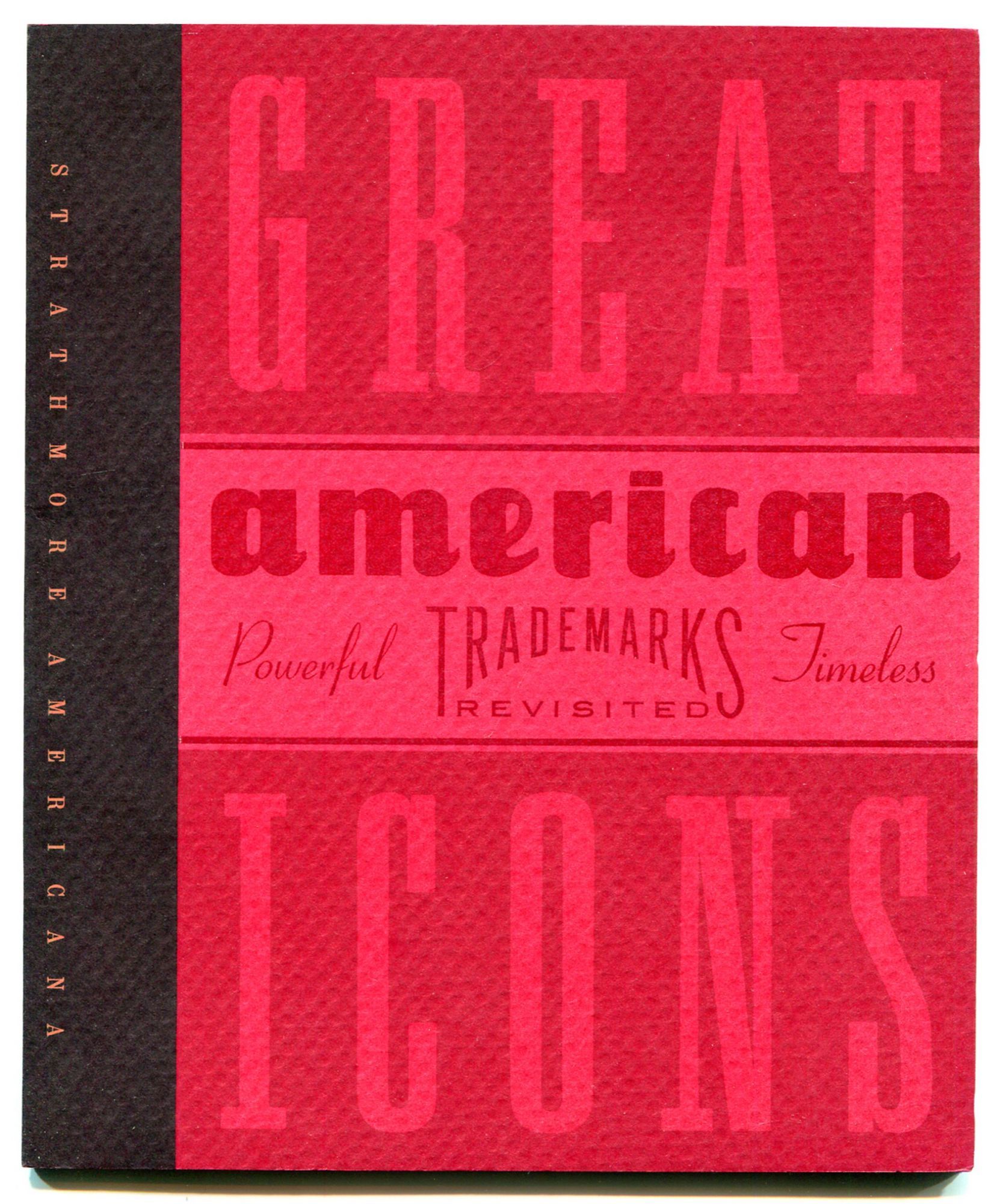 Strathmore Americana, 1990. Softcover. Fine. First edition. Illustrated in color. Fine in pictorial wrappers. Designer Michael Mabry's American trademark–themed sample booklet created to show off Strathmore Paper Company's Americana line of text and cover grades. Feature variously colored, textured papers, alongside two essays on trademark legacy.