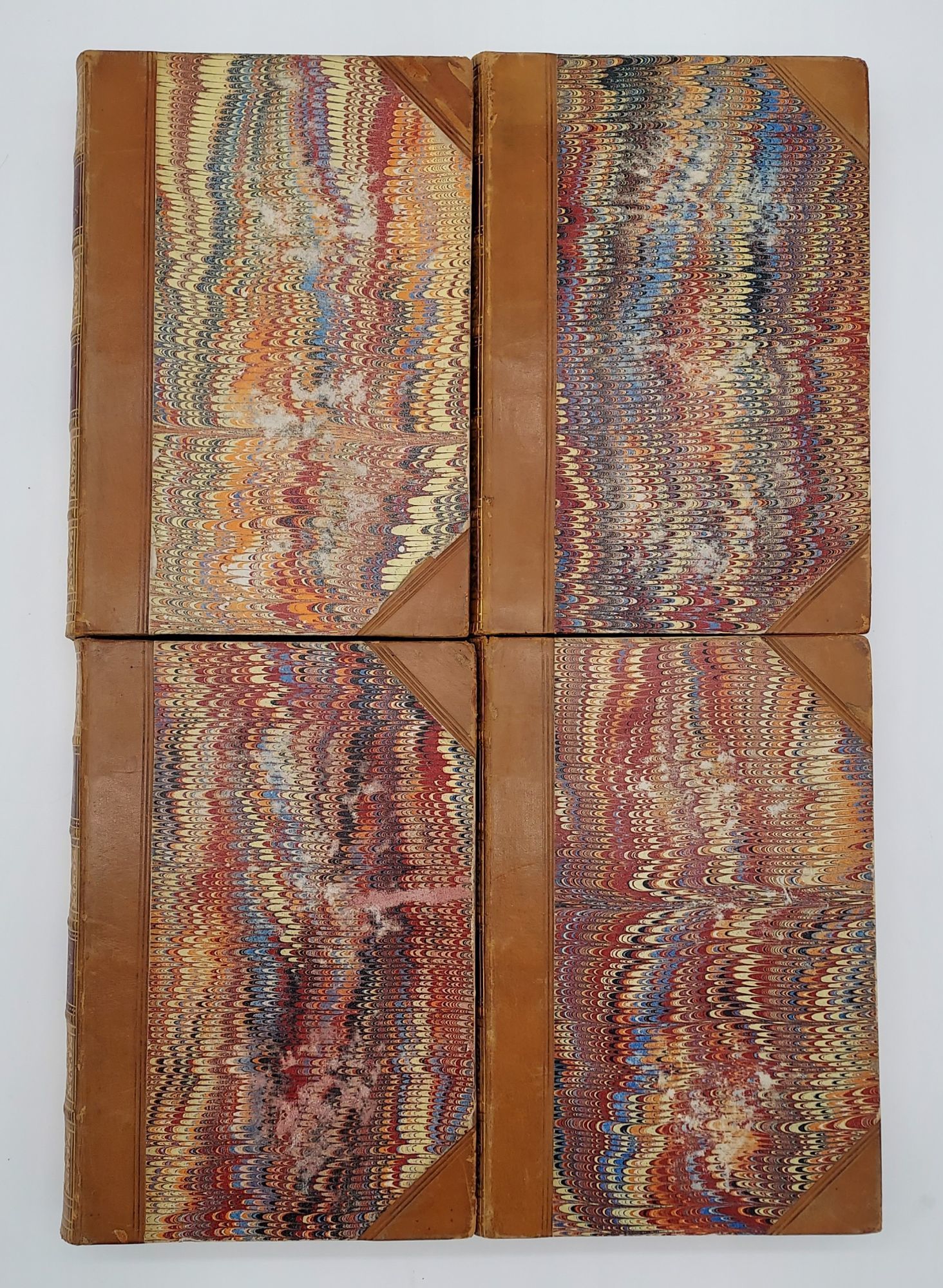 New York: Derby & Jackson, 1858. New Edition, with Numerous Additions and Notes. Leather Bound. 468; 479; 452; 452pp. Duodecimo [19 cm] 3/4 leather with marbled paper over boards, gilt tooled spines, and red leather spine labels. Marbled text block edges and endpapers. Light rubbing to the board edges, and a bit more to the boards themselves. Underlying boards just starting to peek through at a few of the corners. Contemporary owner's name in pen on the front flyleaves. Stitching very occasionally visible in the inside margins. Books very sturdy. A handsome set of this famous biography.