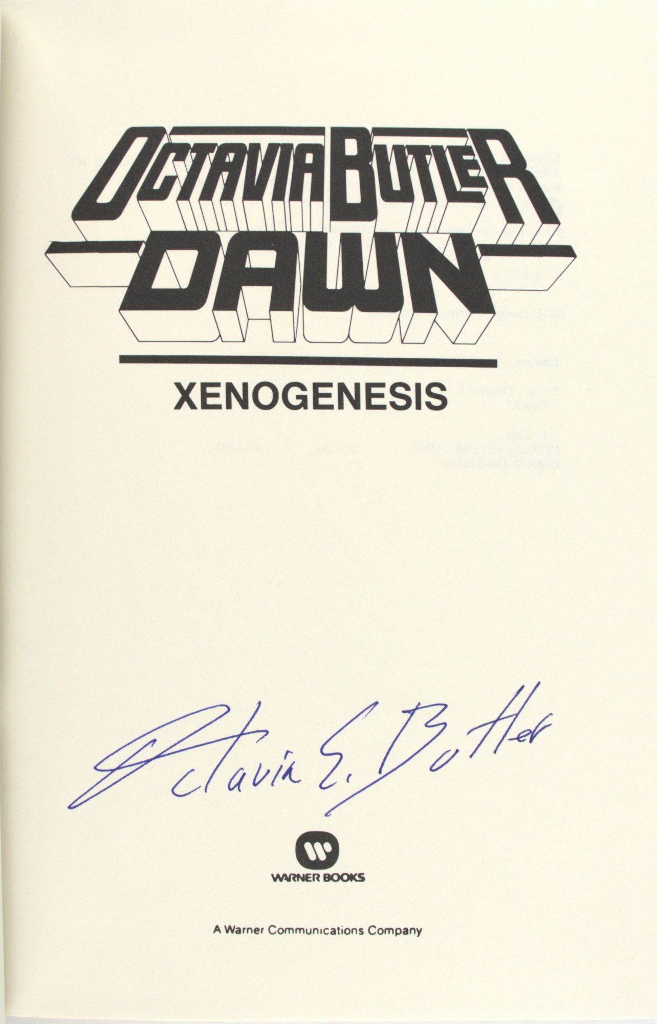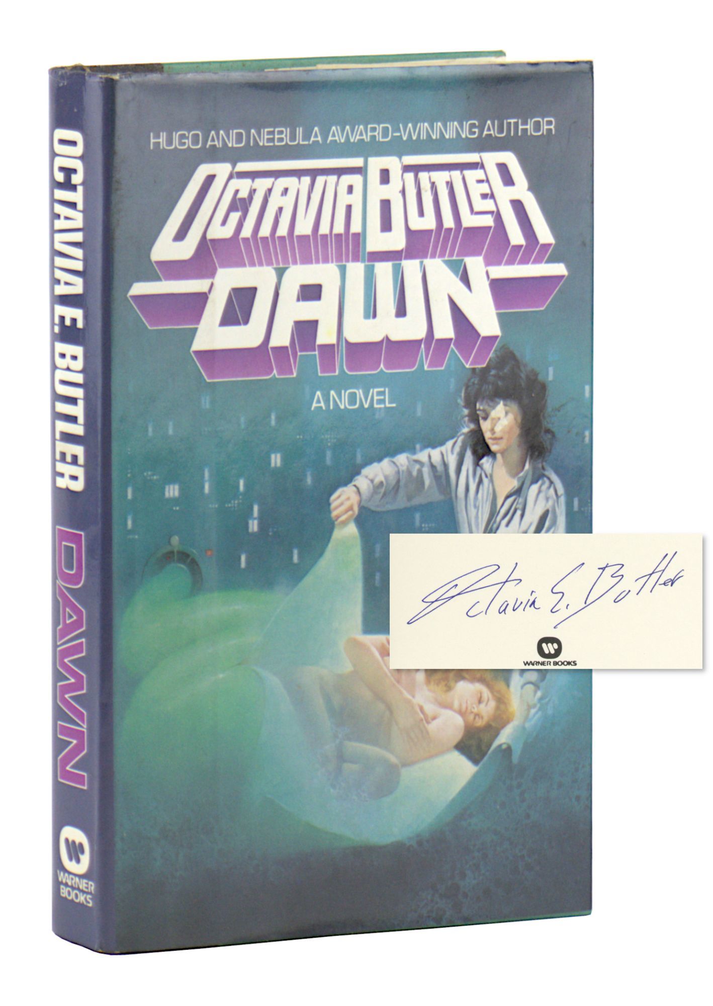 First volume in Butler's Xenogenesis series, retaining the publisher's infamously whitewashed dust jacket design which depicts the protagonist (a Black woman in the book) as a white woman reminiscent of Sigourney Weaver in Alien.