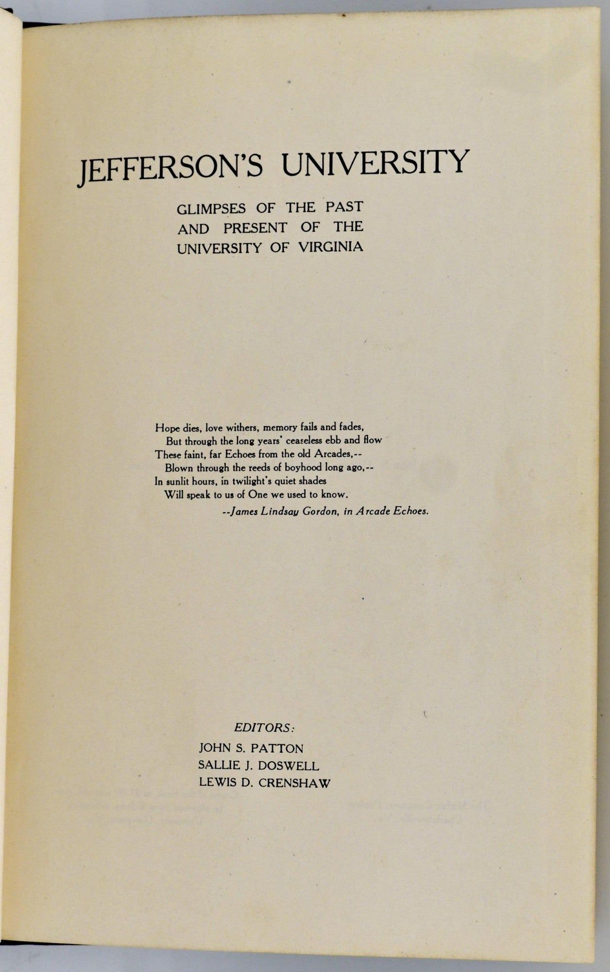 [VIRGINIA] JEFFERSON’S UNIVERSITY. GLIMPSES OF THE PAST AND PRESENT AT THE UNIVERSITY OF VIRGINIA