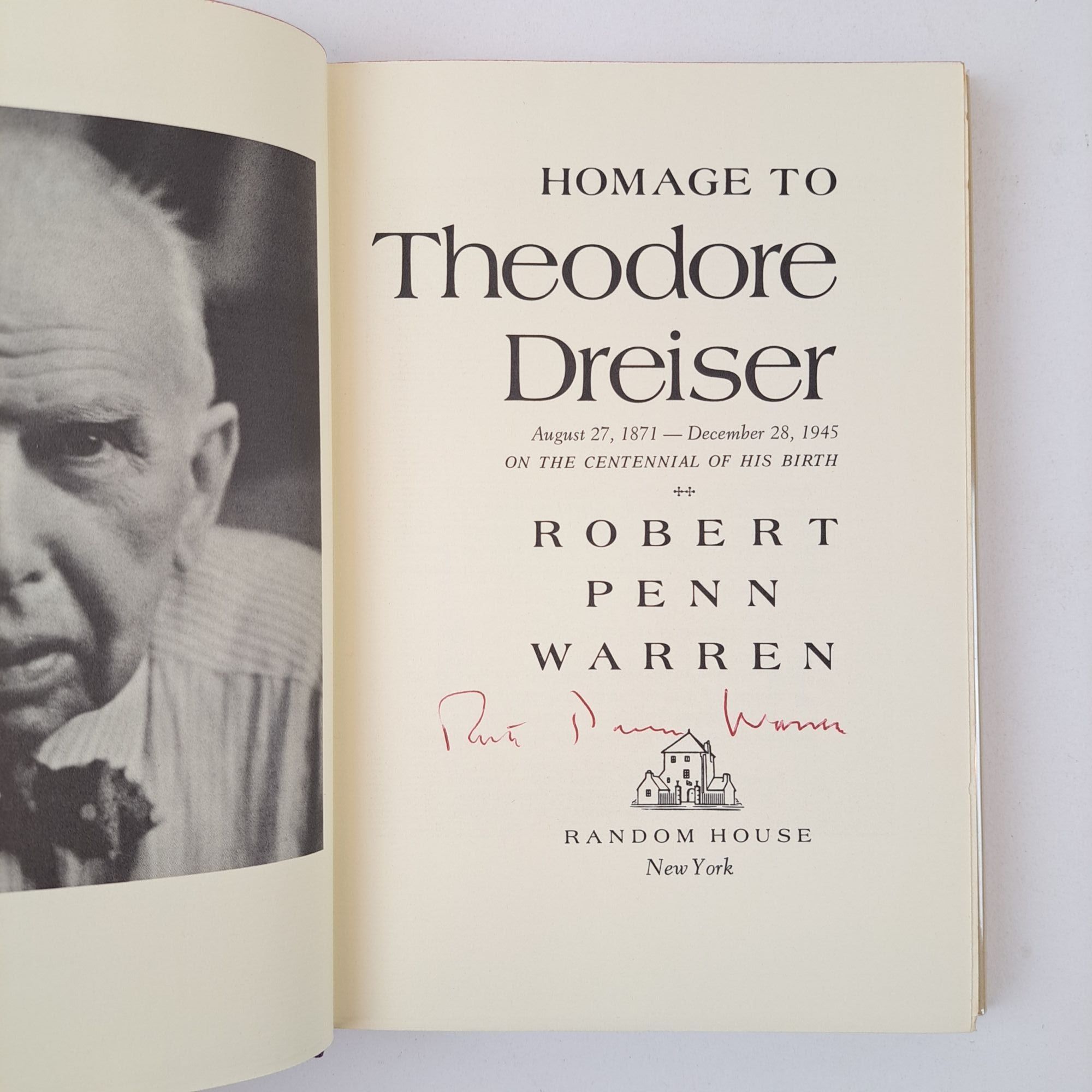 HOMAGE TO THEODORE DREISER; AUGUST 27, 1871 - DECEMBER 28, 1945 ON THE CENTENNIAL OF HIS BIRTH [Signed]