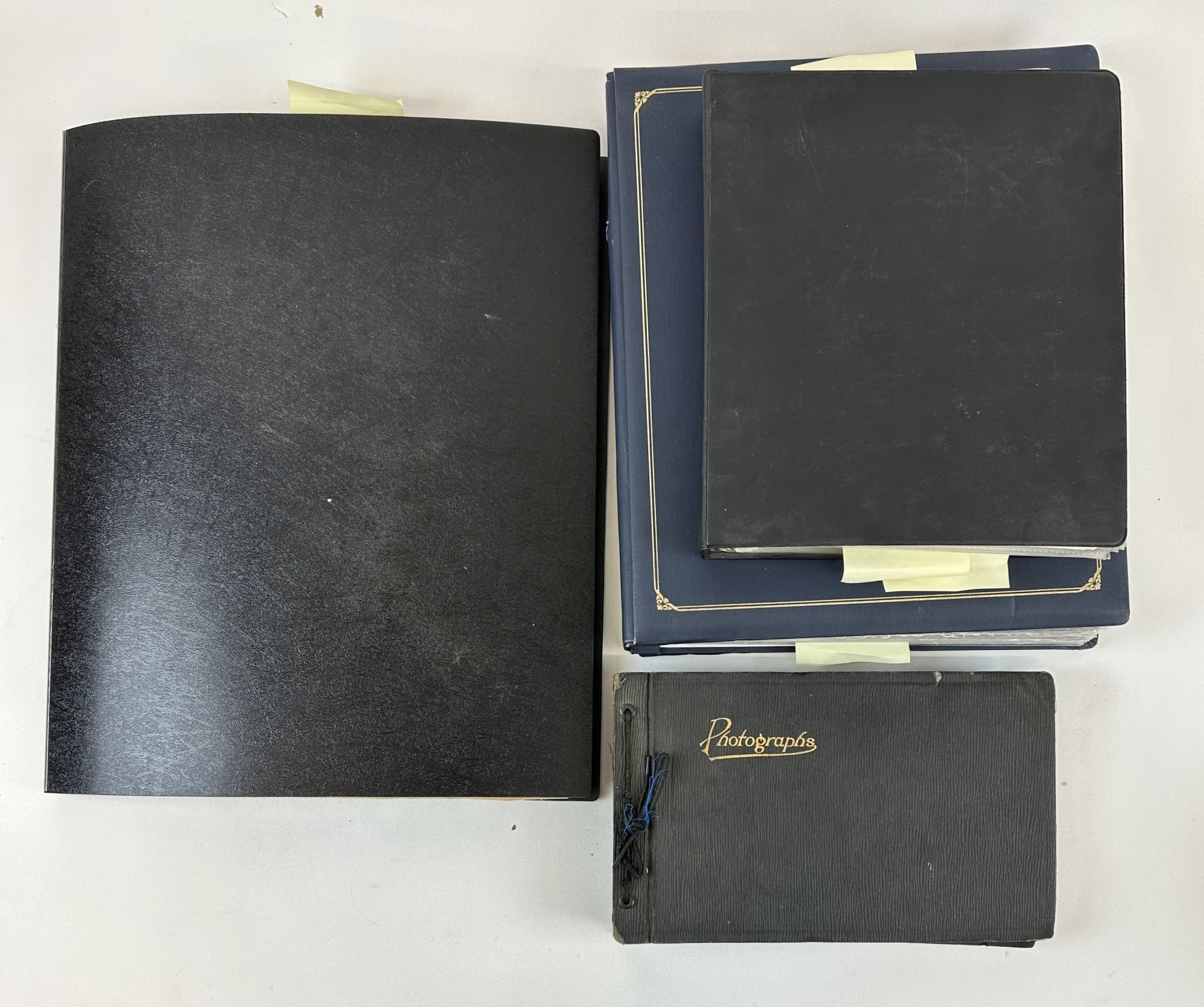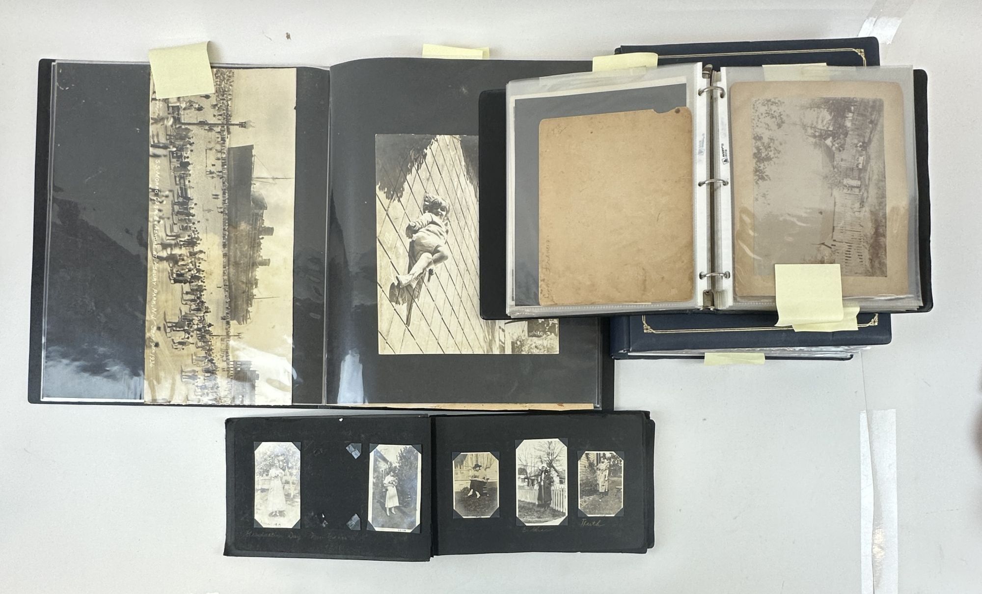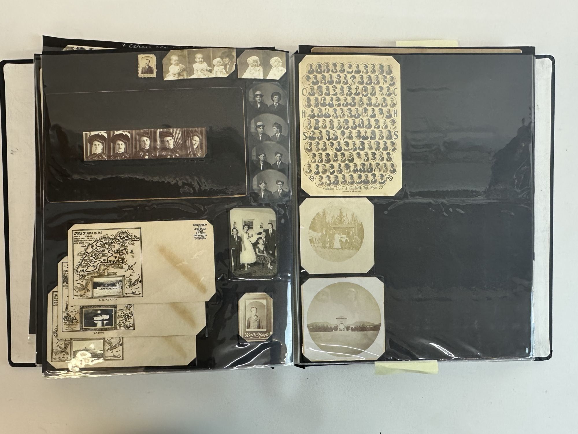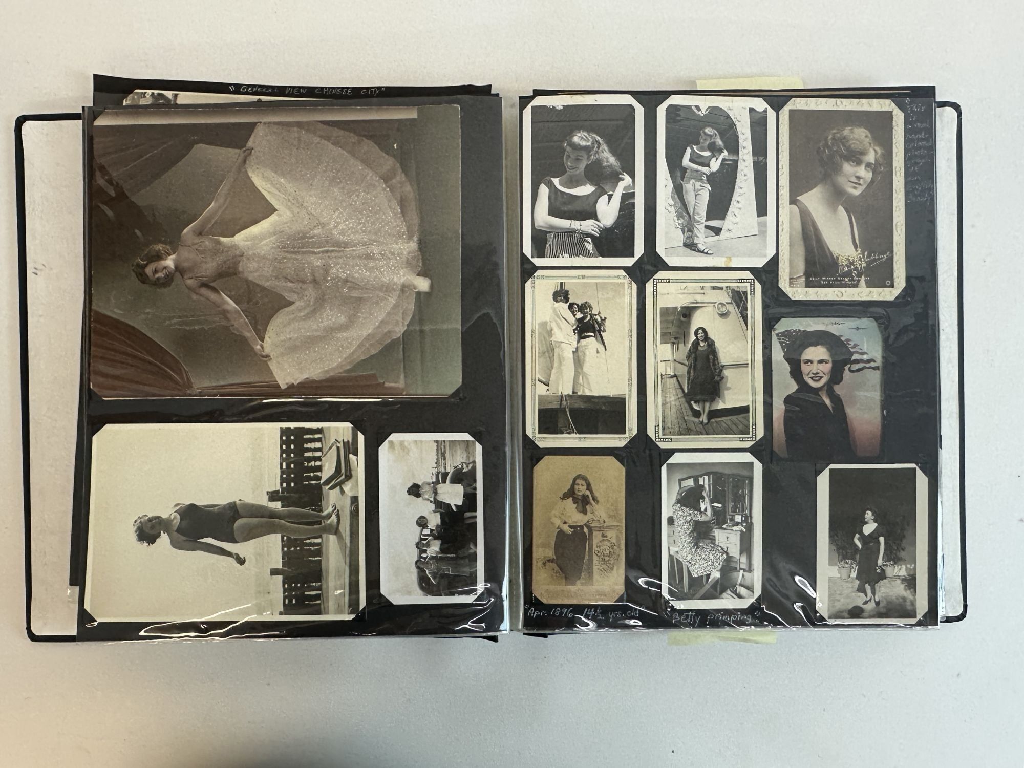 Collection of ~600 19th/20th-century photographs (presented in 4 books) containing a variety of black-and-white, hand-colored monochrome, photo postcards, publicity photos, carte de visite and other original photographs. Photographs are in Very Good overall condition with minimal wear. Binders and books show mild shelf wear. DO Consignment. Shelved at Rockville Room E. 1402642. Special Collections.