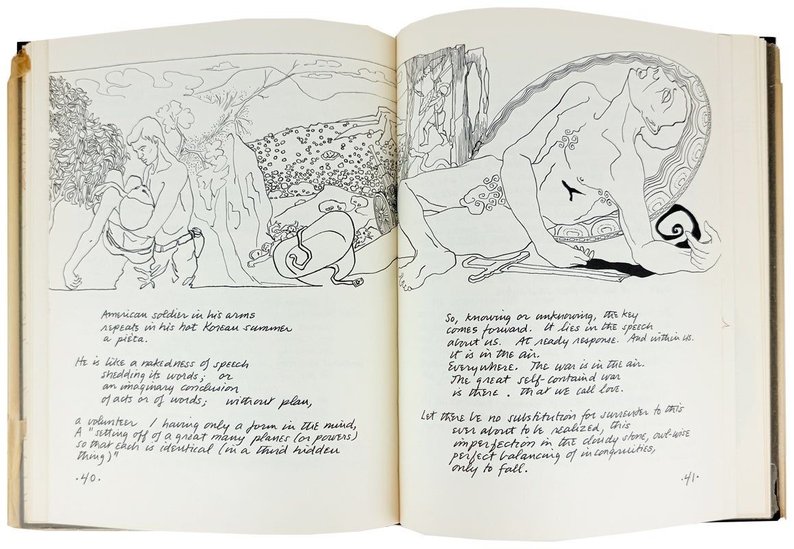 New Haven: Henry Wenning, 1966. Very Good +/Very Good -. New Haven: Henry Wenning, 1966. First Edition, Limited Issue of 200 copies signed by Duncan and Jess at rear, this being #120. Quarto; 91pp. Illustrations in black and red throughout. Original glassine wrapper; black cloth boards stamped in gilt; illustrated endpapers. Prospectus laid in. Chipping and several tears along edges of fragile glassine wrapper. Boards show light shelfwear; binding sound; pages unmarked; overall a Very Good copy; scarce in retail.