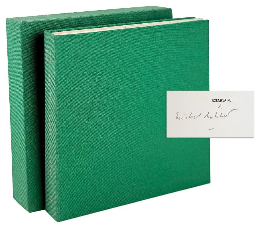 Paris: A Parole Donnee, 1977. Fine/Fine. [Paris]: "A Parole Donnée," [1977]. First Edition, Limited to 10 copies including original engraving printed on both Arches and Japon papers, of which this is no. 1. Small square quarto (16.5cm); loose as issued in original pale grey printed dust jacket housed in original emerald green cloth chemise and slipcase; [16]pp.; two color engravings signed with limitation by the artist. A Fine example. Additionally signed by the poet Bohbot on colophon in rear.