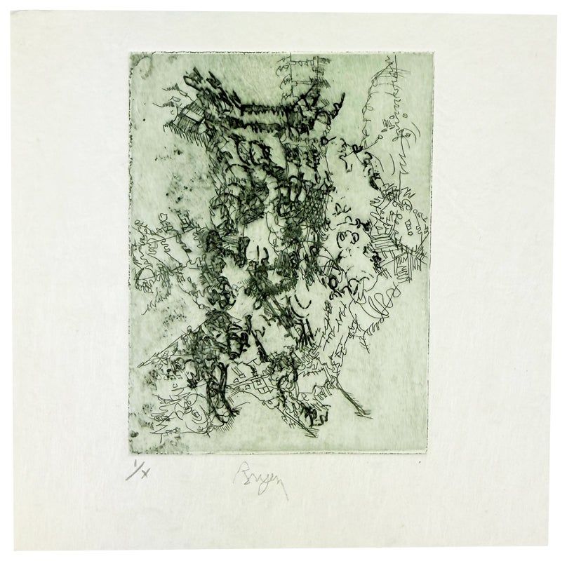Issued as the third volume in the poet's "A Parole Donnée" series. The plates were signed by Bryen shortly before his death in May of 1977. The book was released posthumously, in September. No copies in OCLC as of October, 2025.
