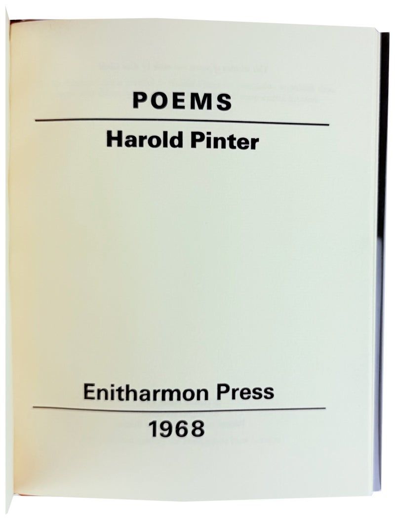 London: Enitharmon Press, 1968. Very Good +/Very Good. London: Enitharmon Press, 1968. First Edition, Limited Issue of 200 copies signed by Pinter at limitation, this being #155. Octavo; 24pp. Clear acetate wrapper. Red morocco spine lettered in gilt over slate cloth boards; top edge gilt; erratum slip. Wrapper rubbed and scuffed. Mild wear to boards with occasional smudging; binding sound and pages unmarked; Very Good or better.