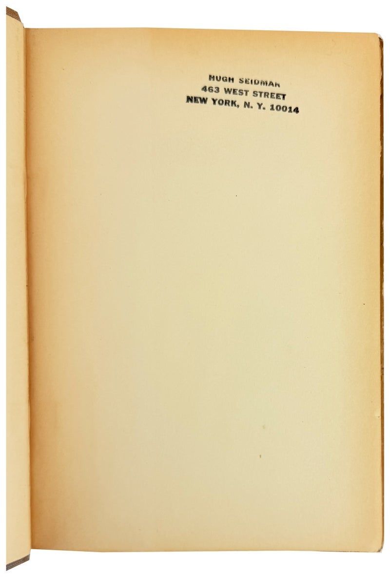 An early collection of prose narratives (not to be confused with Reznikoff's magnum opus, the two volume "Testimony" published in the 1960s). This small work was dedicated to Louis Zukofsky, who had recently edited a 1931 issue of Poetry magazine devoted entirely to Reznikoff and the Objectivist movement. This copy with the ownership rubber-stamp of the late poet Hugh Seidman (1940-2023), one of Zukofsky's most accomplished students.
