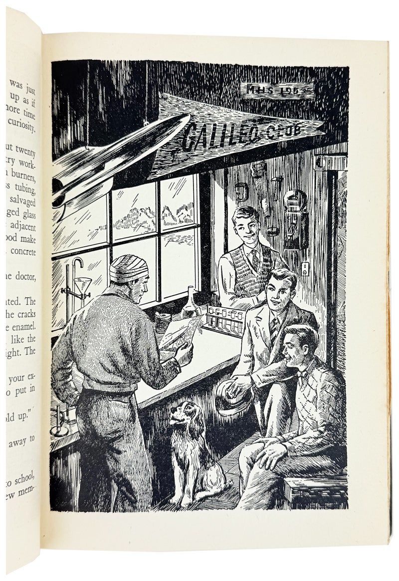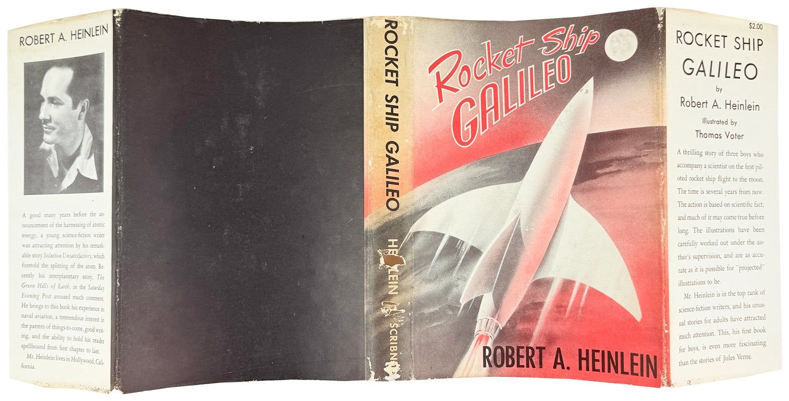 First published novel by a major writer of 20th century American fiction, "Rocket Ship Galileo" follows three amateur rocketeers as they fight off Moon Nazis and discover a dead lunar civilization. "A pioneering novel that began American mainstream SF for children and combined young protagonists, gadgetry, current science, and adventure," (Anatomy of Wonder). Copies in unclipped first issue dust jackets quite scarce.