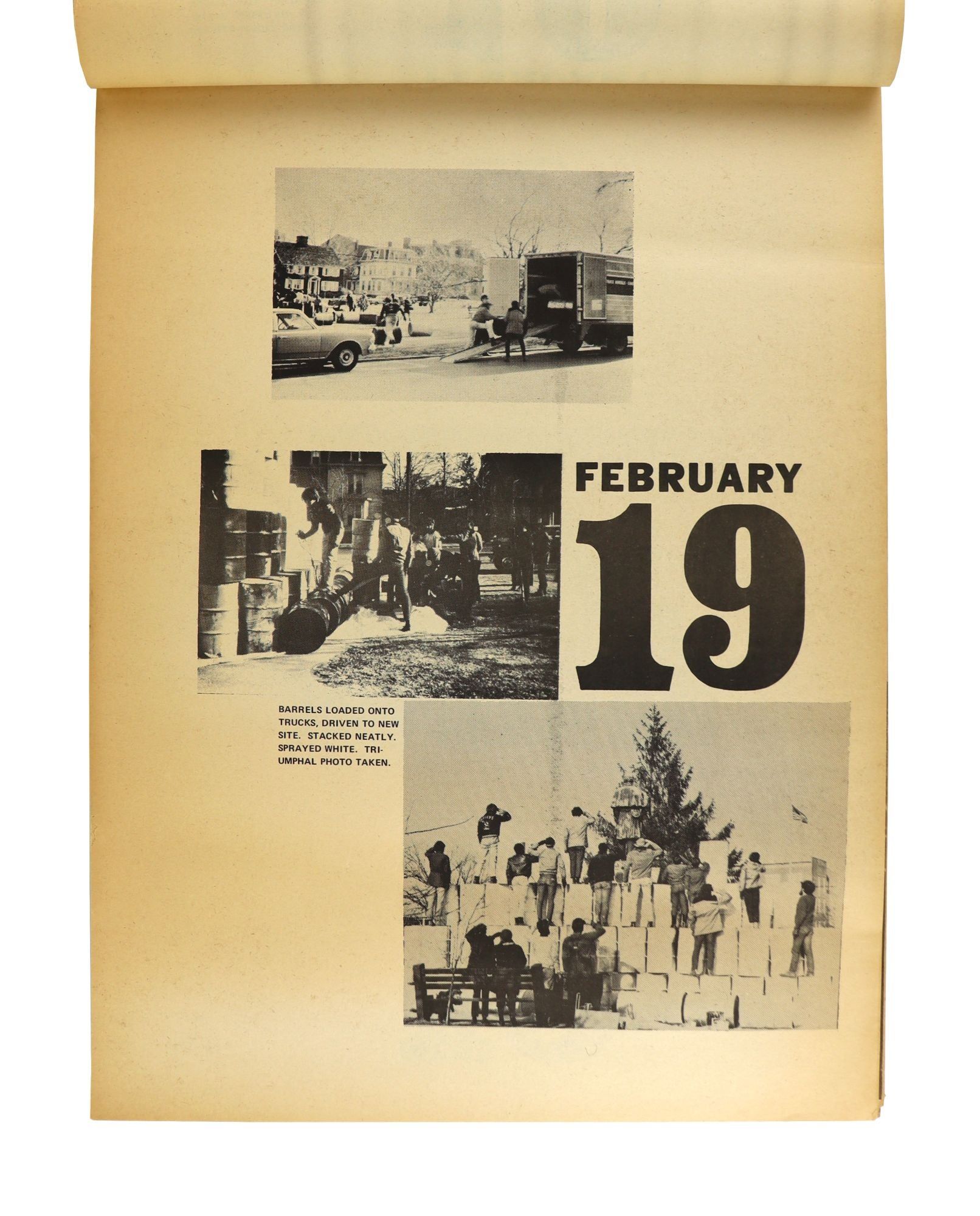 Alan Kaprow coined the term “Happenings” and helped the associated artistic movement develop its guiding philosophy. This calendar offers a record of several such events, which were staged, participatory performances. According to Kaprow and his contemporaries, Happenings were designed to muddle the boundary between art and life. The calendar’s introduction states: “This is a calendar of past events. The days on it are the days of the Happenings. They were days off. People played.”.