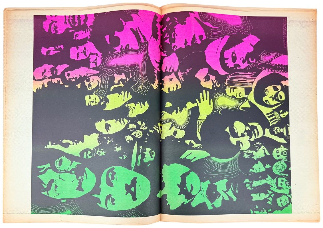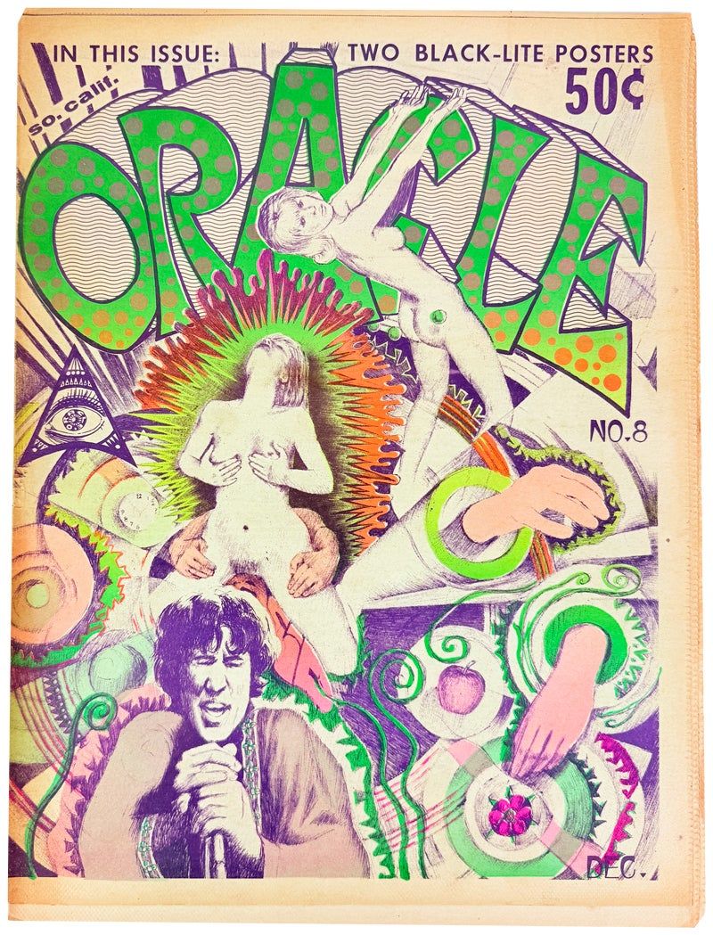 Vibrant single issue of this offshoot of the San Francisco Oracle edited by Allen Cohen. This issue includes two "Black-Lite" posters, one on the centerfold, the other printed on pp. 8/25.