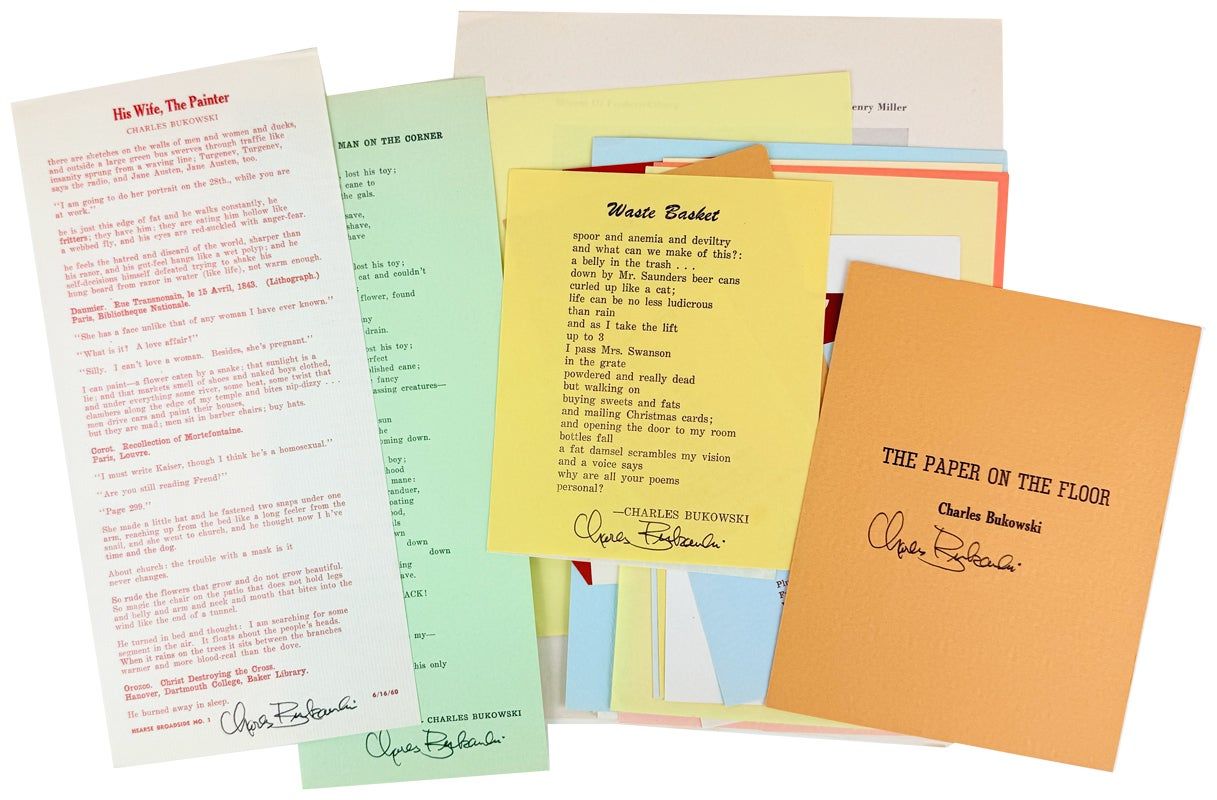 Contents include four early contributions by Charles Bukowski, including "His Wife, The Painter," "The Old Man on the Corner," "The Paper on the Floor," and "Waste Basket," all of which are signed.