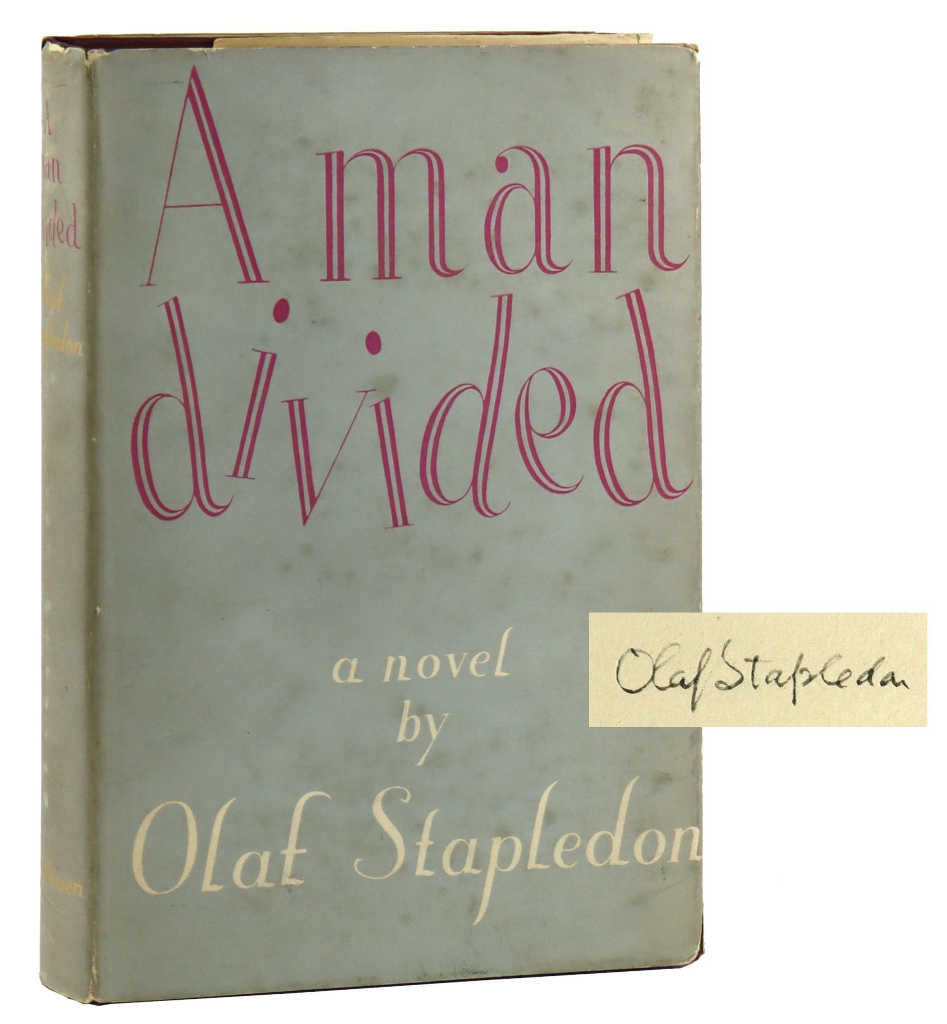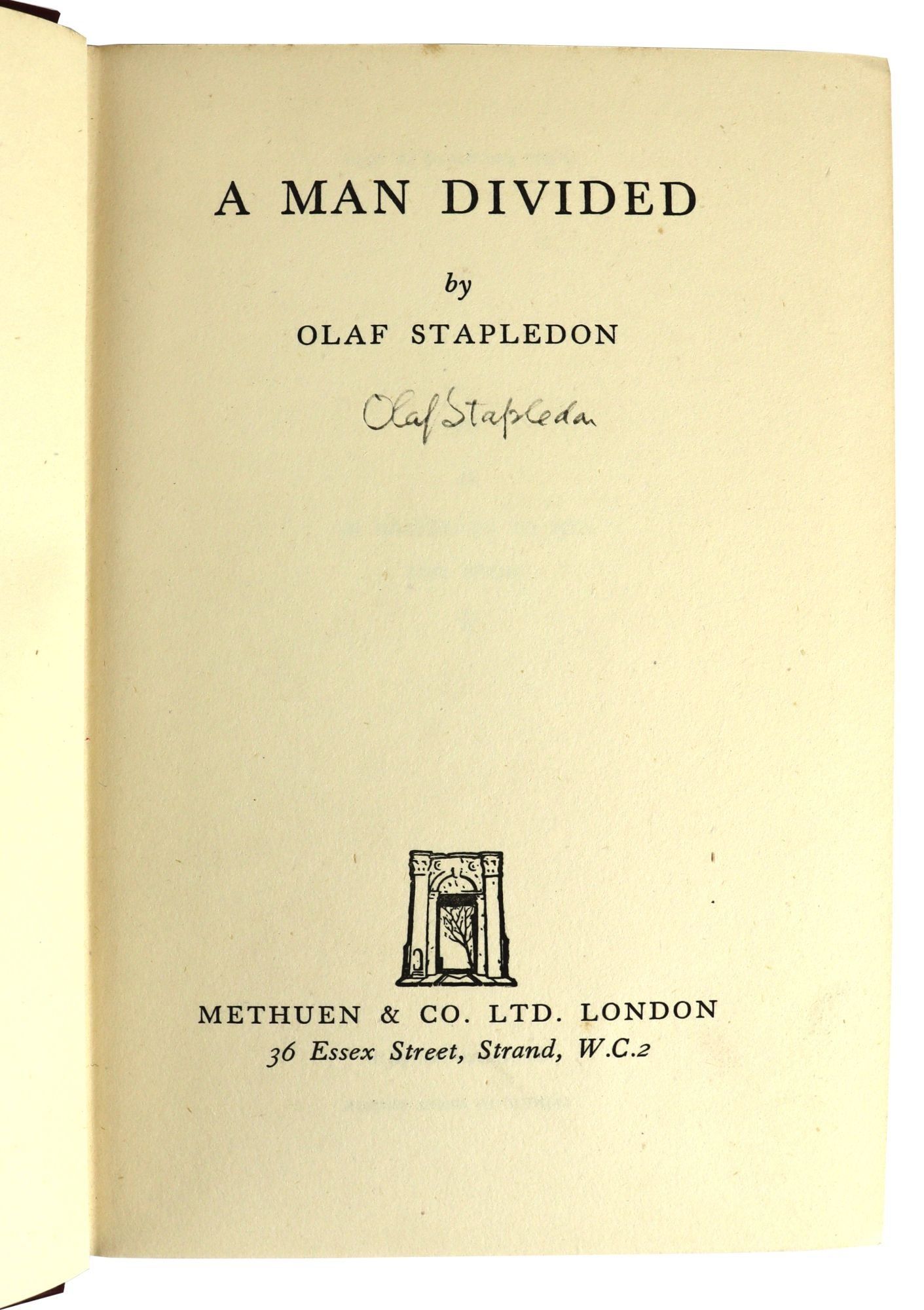 London: Methuen & Co. Ltd, 1950. Very Good/Very Good. London: Methuen & Co. Ltd., 1950. First Edition. Signed by Olaf Stapledon without inscription at title page. Octavo; 187pp. Printed dust jacket. Maroon boards stamped in gilt. Unclipped dust jacket worn with some chipping to edges; general smudging and rubbing. Boards bumped along edges; binding sound; spotting to top edge of text block. Previous owner's bookplate to front pastedown; pages unmarked; Very Good.