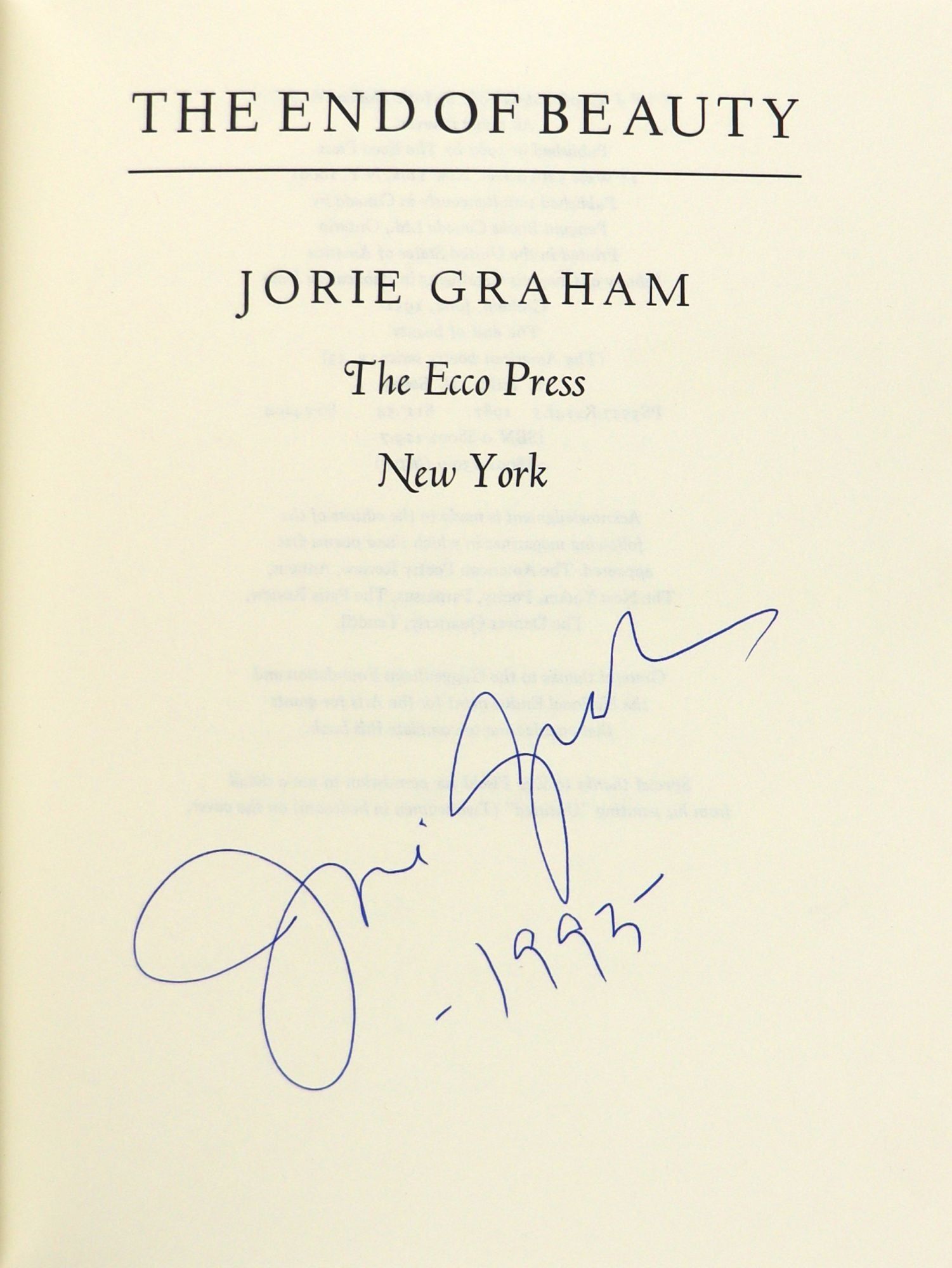 Signed by the author and dated 1993 without inscription on full title. Graham's third collection.