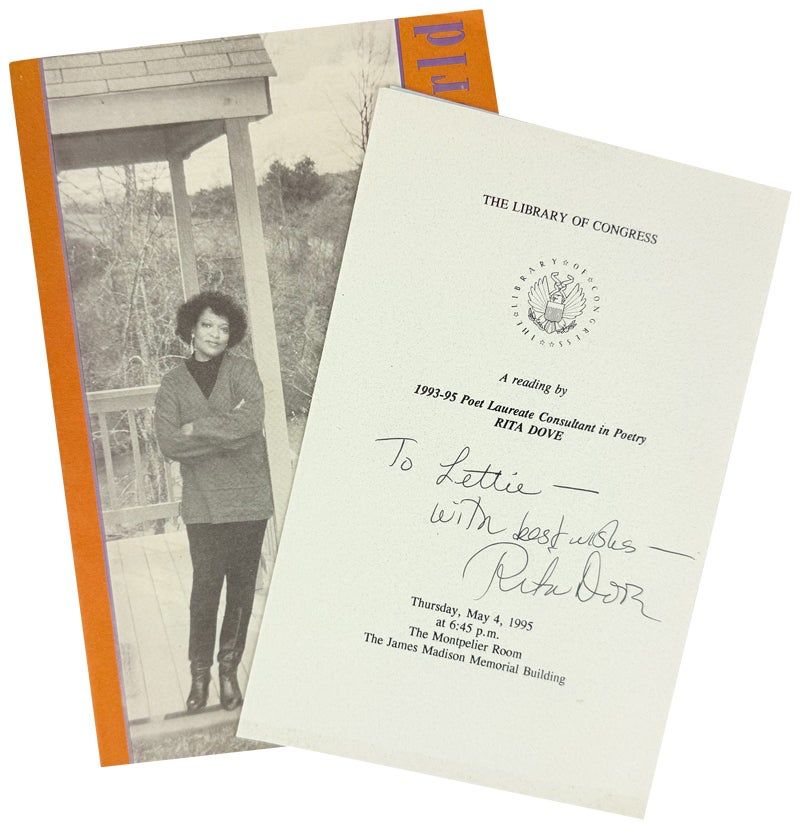 Offered with laid in program of a Library of Congress reading by Rita Dove on May 4, 1995, also inscribed and signed, "To Lettie -- With best wishes -- Rita Dove.