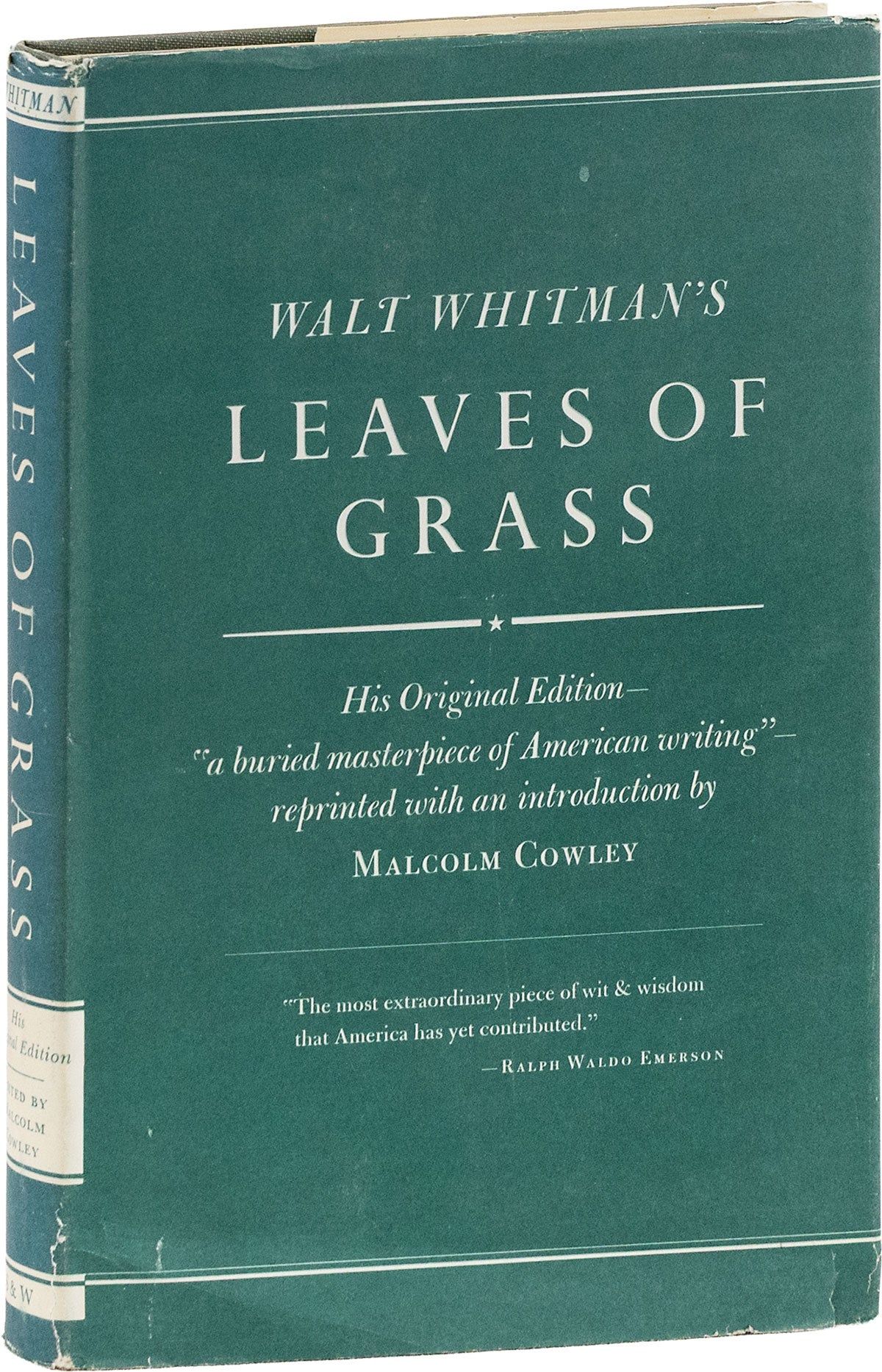 London: Secker & Warburg, 1960. First U.K. Edition. First Impression. Octavo (24cm); sage green cloth, titled in silver on spine; dustjacket; xxxviii,[5],6-145,[7]pp. Pictorial bookplate of noted poet, translator, and anthropologist Nathaniel Tarn (1928-2024) mounted to front pastedown, with his pervasive light pencil annotations appearing throughout the text. Near Fine in a Very Good+ dustjacket, unclipped (priced 21/- net), with gentle sunning to spine, some modest wear, several tiny nicks and tears, and 1" tear at lower front joint expertly mended on verso. The original (unrevised) text of of the 1855 Leaves of Grass, with a lengthy introduction by editor Malcolm Cowley. MYERSON C104.1.b2.