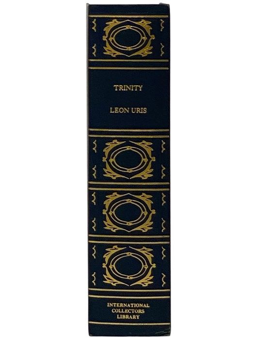 Garden City, New York: International Collectors Library, 1976. Reissue. Hard Cover. Near Fine/No Jacket. 8x5x2. Minimal wear to corners. Binding tight and square, pages clean, bright, and unmarked. 1976 Hard Cover. 751 pp. William Morris replica binding. Navy blue leatherette, gilt titles and decorations, ribbon marker bound in. The 'terrible beauty' that is Ireland comes alive in this mighty epic that re-creates that Emerald's Isle's fierce struggle for independence. Trinity is a saga of glories and defeats, triumphs and tragedies, lived by a young Catholic rebel and the beautiful and valiant Protestant girl who defied her heritage to join him. Leon Uris has painted a masterful portrait of a beleaguered people divided by religion and wealth--impoverished Catholic peasants pitted against a Protestant aristocracy wielding power over life and death.