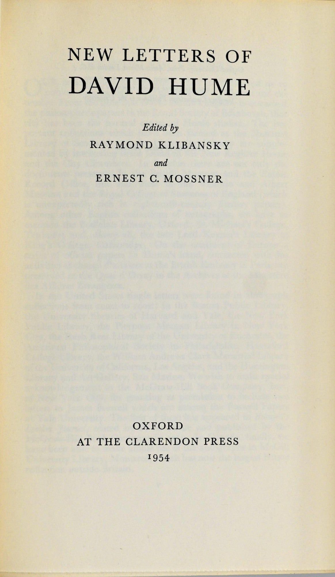 [PHILOSOPHY] NEW LETTERS OF DAVID HUME~