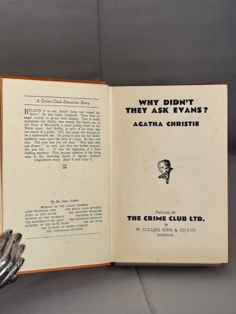 London: Collins for the Crime Club, 1934. First Edition. Very Good+. second printing, same month as the first, as stated on the copyright page. Small octavo, 252 pages; publisher's orange cloth, cream end papers. All hinges are intact. Internally clean and bright, with no markings of any kind. No dust jacket.