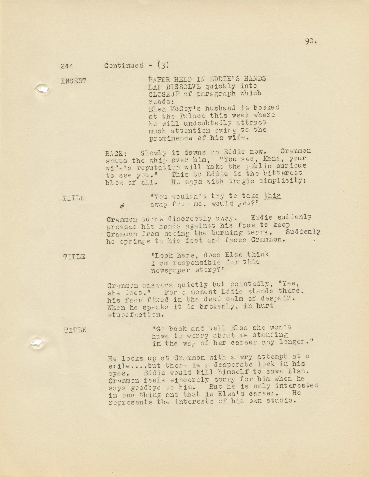 Beverly Hills, CA: Metro-Goldwyn-Mayer [MGM], 1928. Draft script for the 1928 film. An early sound film, today considered lost, released with no dialogue, but with a synchronized musical score and sound effects, using sound-on-disc and sound-on-film processes.