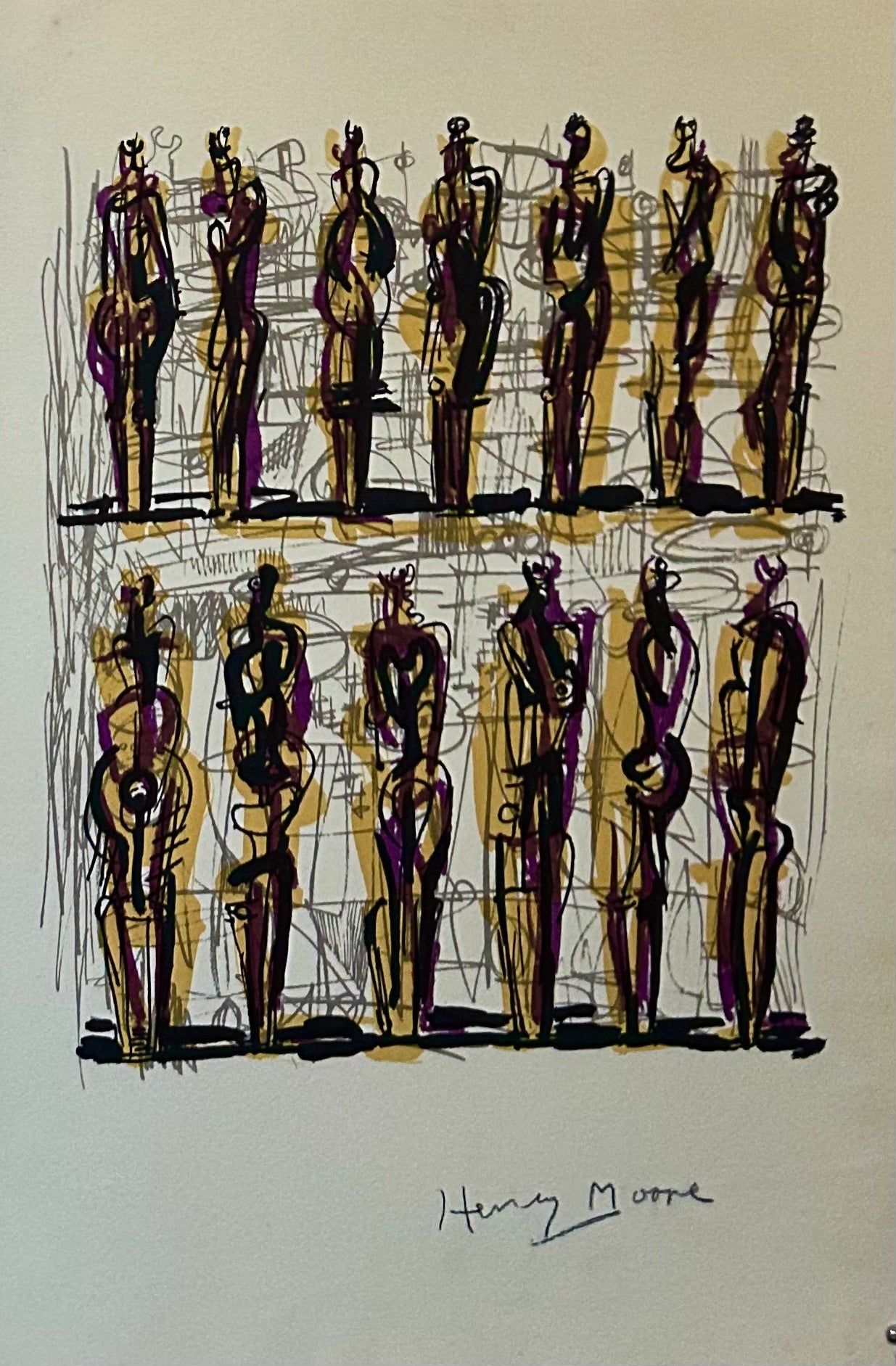 London & New York: George Rainbird & New York Graphic Society, 1958. First edition. Hardcover. Orig. beige cloth spine lettered in gilt, illustrated dark gray front cover. Fine in very good slightly nicked dust wrapper replicating the front cover design. Moore, Henry. Unpaginated. Folio, 47.5 x 33 cm. With Auto-lithograph on Henry Moore watermarked paper tipped-in and signed in pencil. The Standard Edition. Plus 58 plates and annotations, printed by Curwen Press on hand-made paper. Interior fresh and bright, decorated endpapers. Tiny nicks to head and foot of dust wrapper.