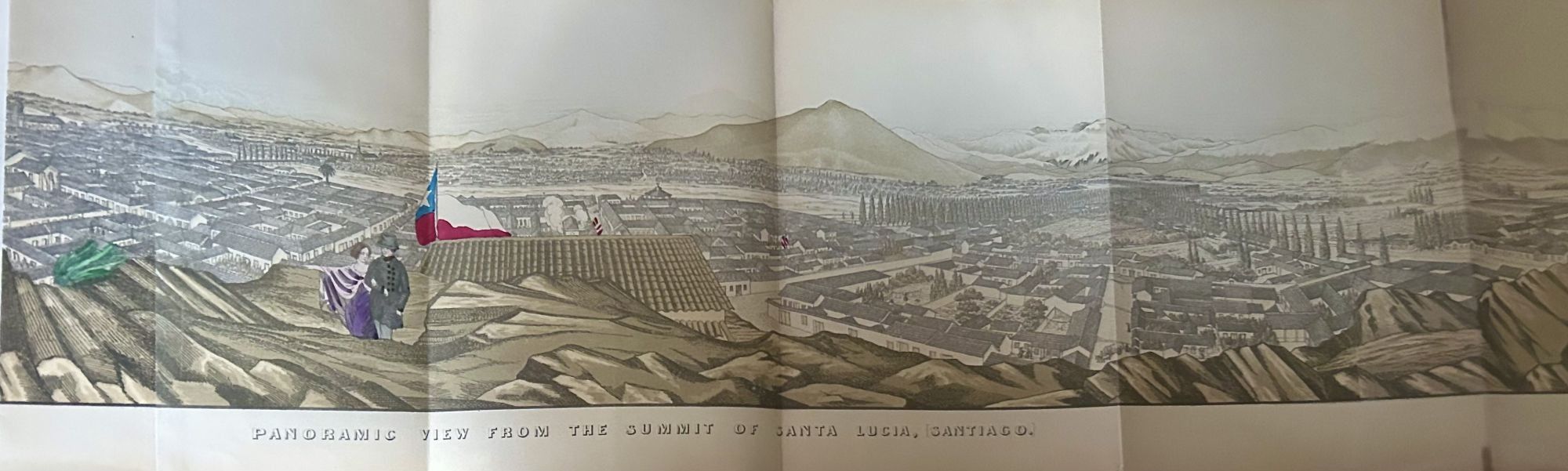 Washington DC: Washington: House of Representatives, 1855. First edition. Hardcover. Contemporary quarter calf spine, black leather spine labels printed in gilt and marbled boards. Good, Very good. xiii, 556 & ix, 300 pages. 30 x 23.5 cm. Account of an American expedition to Chile, sponsored by the American government. The expedition was led by Lieut James Melville Gilliss between 1849 and 1852 and it went overland to Panama City, then across the South Pacific to Callao, Valparaiso, and Santiago. One colored lithographic plate by J. M. Stanley, one fold-out colored lithographic panorama 177 x 29 cm, 7 uncolored lithographic maps, one uncolored lithographic by J. Queen, 3 uncolored lithographic plates, and text figs. Subjects covered include Indian antiquities (Chile & Peru), Birds, Reptiles, Plants, Fossils and Mammals. Rubbing to extremities and corners, bookplate of H.C. Lewis, and ink signature front free endpapers of both volumes of the Hon. Asa Parker dated Aug. 15th 1856. Paper spine labels. Portion of panorama provided.