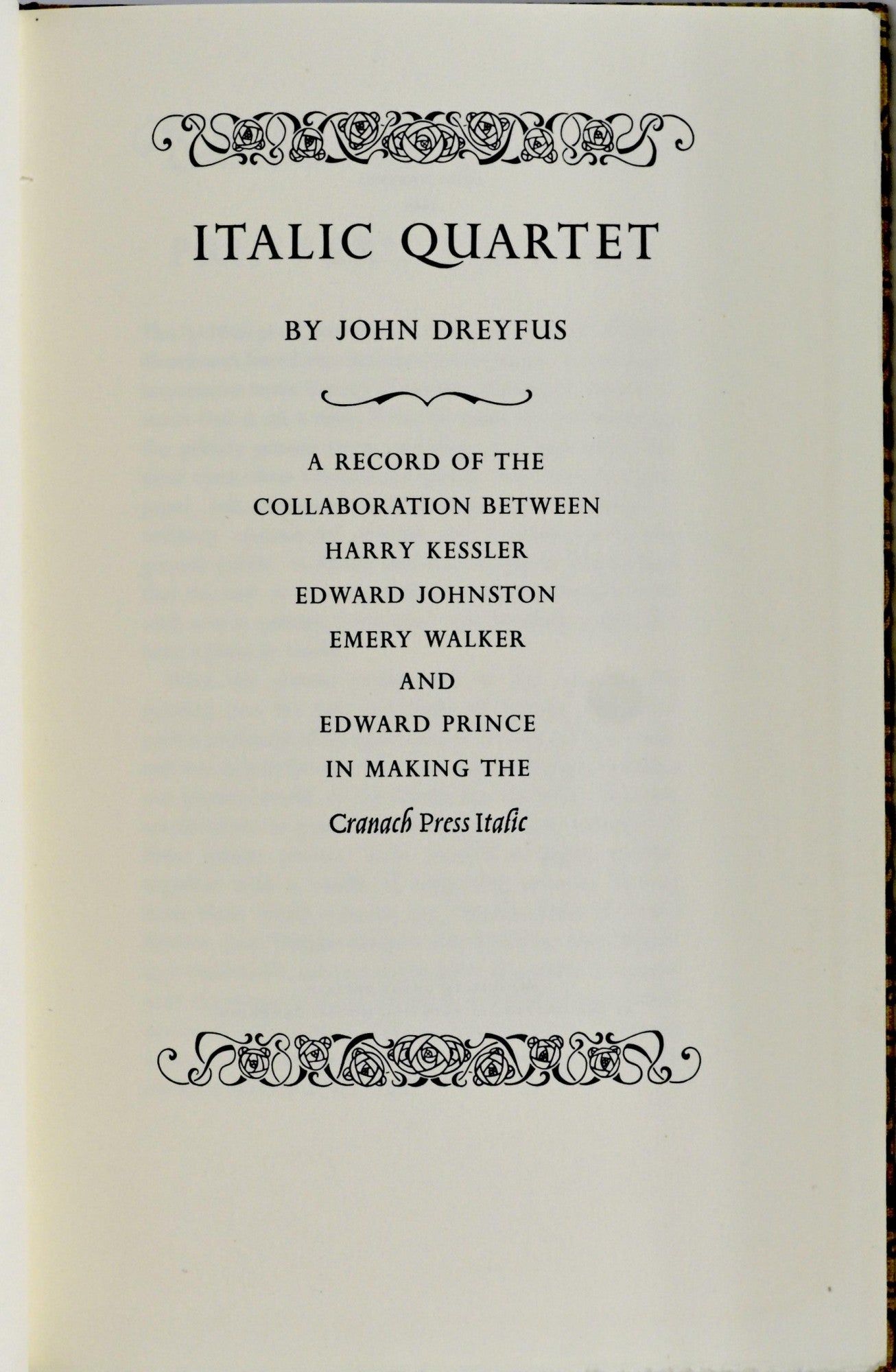 [SPECIAL PRESS] ITALIC QUARTET. A RECORD OF THE COLLABORATION BETWEEN HARRY KESSLER, EDWARD JOHNSON, EMERY WALKER AND EDWARD PRINCE IN MAKING THE CRANACH PRESS ITALIC
