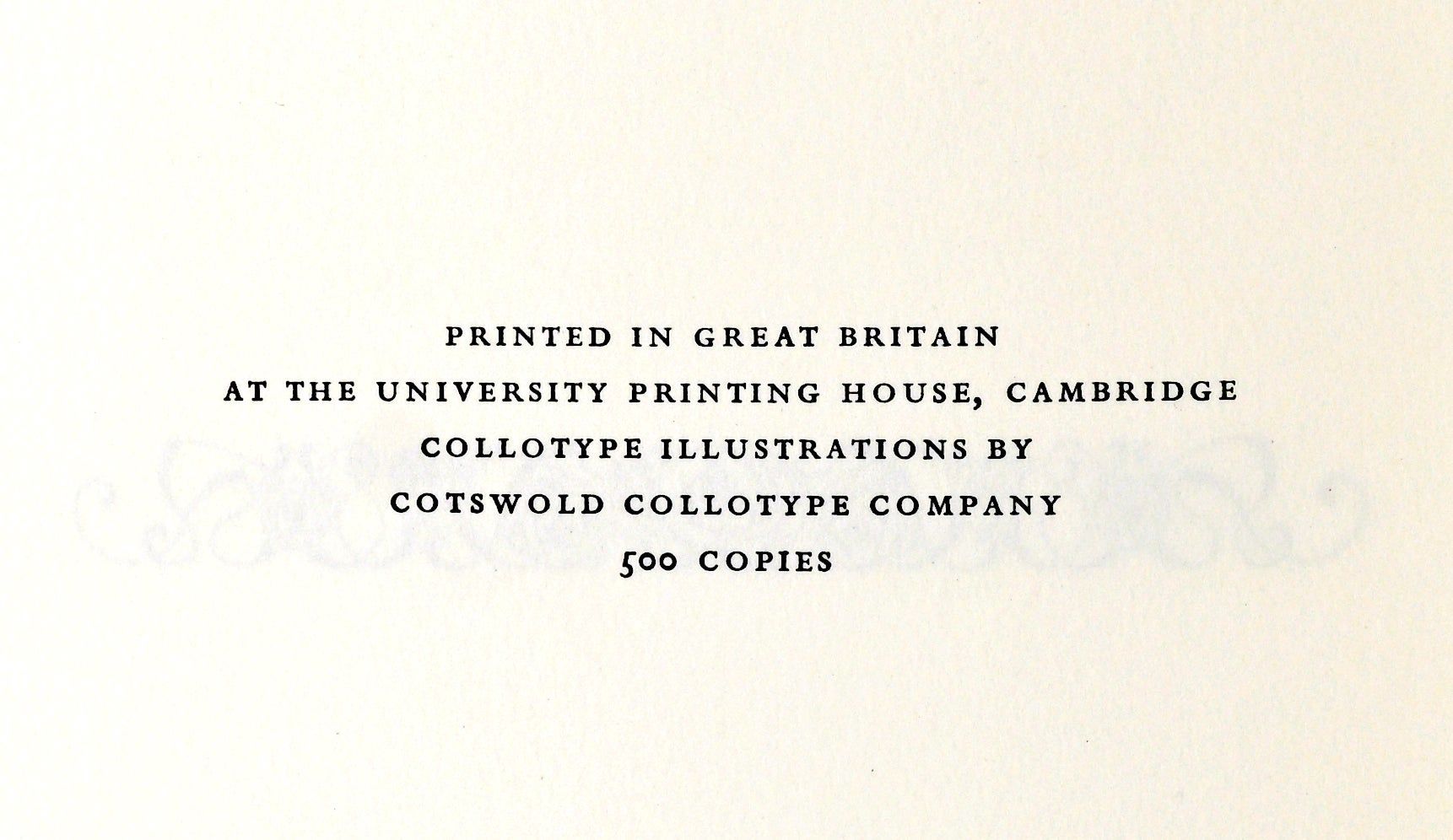University Printing House, Cambridge, 1966. Limited Edition. Hard Cover. Very Good binding. Large octavo; in printed floral paper covers, and with matching slipcase; vii, [1], 50 pages, with illustrations; with cloth title label lettered in gilt at the spine; there are several inconsequential spots to the spine; the edition is limited to the 500 copies.~~There are no ownership marks in the book. Very Good binding.