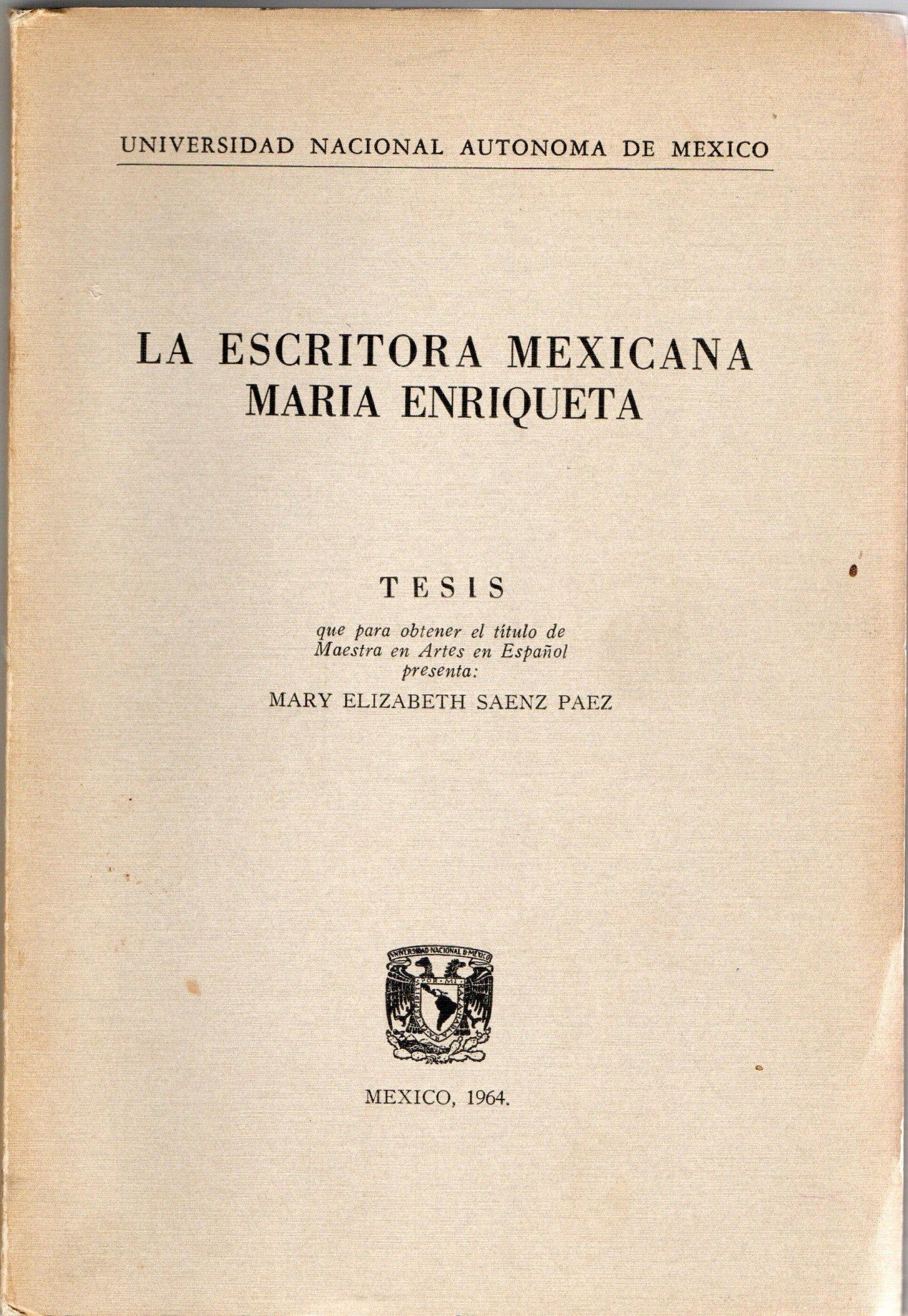 Mexico: [The Author], 1964. Soft Cover. Very Good binding. Signed. Large octavo; in grey printed wrappers; 144 pages, including bibliographical referenece, with illustrations; this copy is signed and inscribed by the author:~“Para il maestro Mauricio Charbonal como recuendo de nuestras dias en la U N A M. Mary Elizabeth Saenz Paez 3 de agosto del 1964. Mexico D. F.”~~At the head of the title page” Universidad Nacional Autonama de Mexico.~~Maria Enriqueta was a Mexian poet-novelist and writer. Very Good binding.
