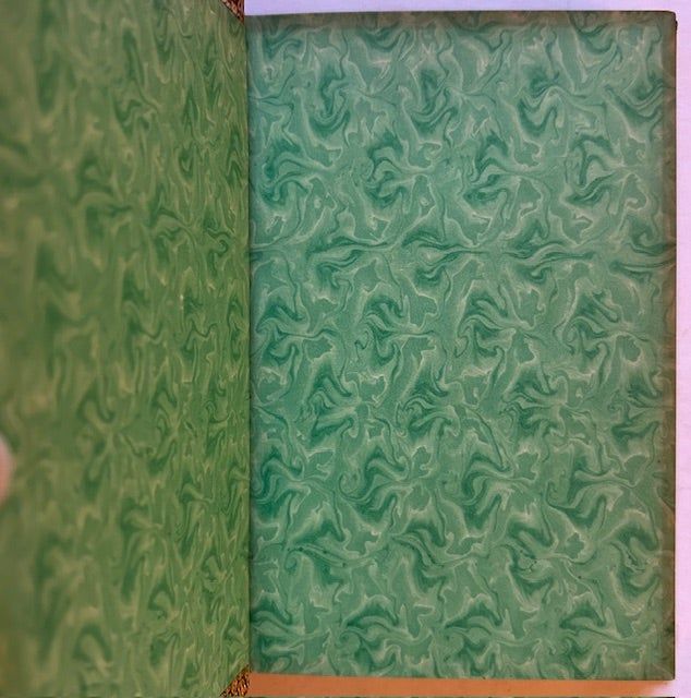 London: Martin Secker, 1931. Full leather. Very Good +. The 1931 6th printing, bound in a lavish, dark-green full-morocco, with intricate gilt-tooling within the compartments and contrasting leather labels along the spine. Beautiful gilt-bordering to the panels and along the fore-edges and the dentelles. A bit of offsetting near the edges, very mild scuffing to the panels. Crisp and solidly VG+. 16mo, all edges gilt, the "Riviere & Son London" binder stamp at the foot of the first blank endpaper.
