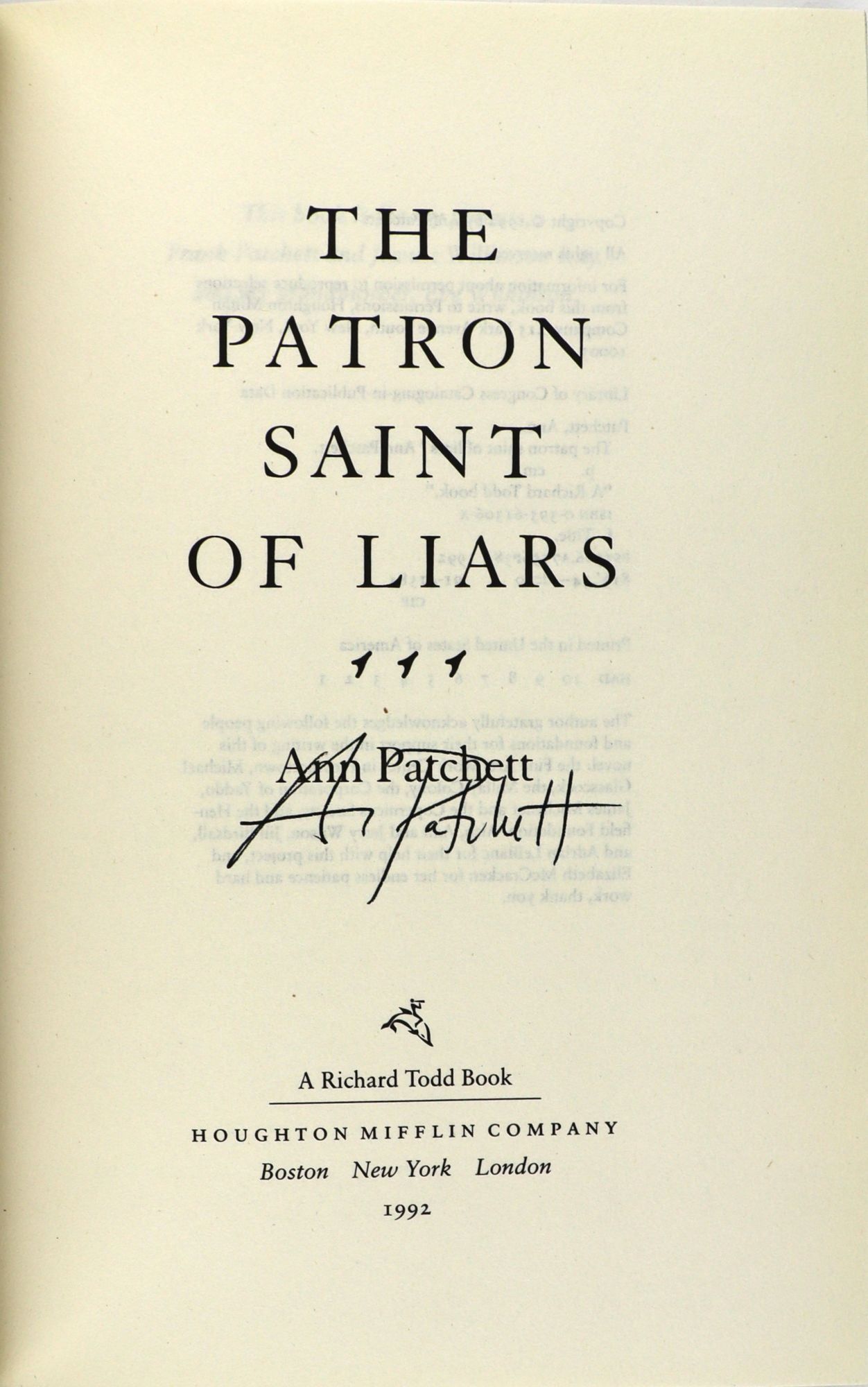 - Boston: Houghton Mifflin Company / A Richard Todd Book, 1992