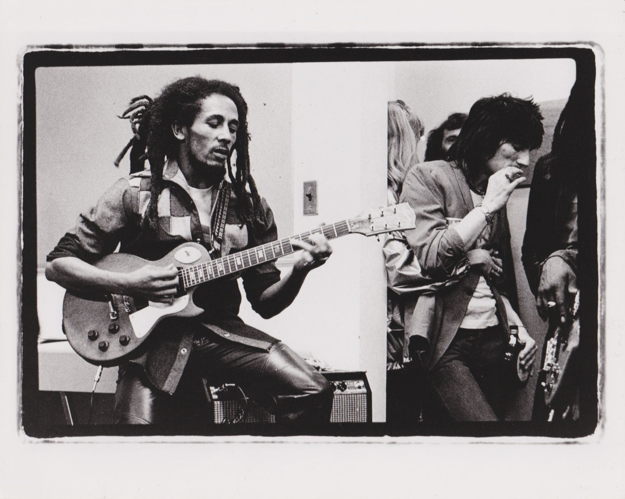 Original photograph of Bob Marley and Ron Wood backstage in 1979