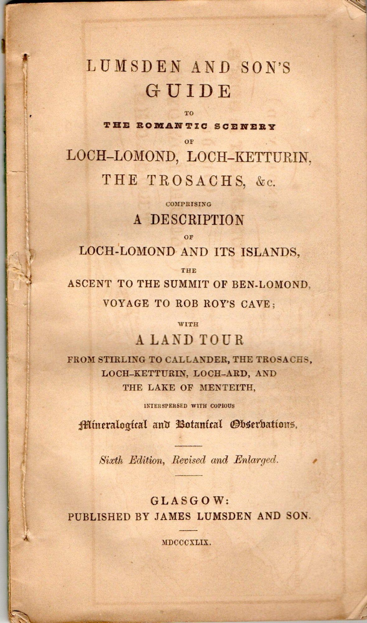 [TRAVEL] GUIDE TO THE ROMANTIC SCENERY OF LOCH LOMOND, THE TROSACHS,, &c. Guide to The Romantic Scenery of Loch-Lomond, Loch-Ketturin, The Trosachs, &c. Comprising a Description of Loch-Lomond and Its Islands, the Ascent to the Summit of Ben-Lomond, Voyage to Rob Roy's Cave with .