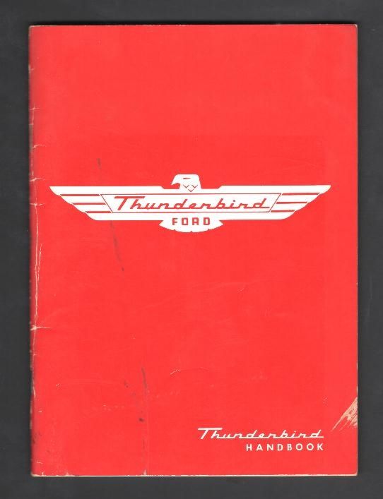 Dearborn MI: Ford Motor Company. Very Good. (c.1954). First Edition. Stapled wraps. [some external scuffing and edgewear to covers, some horizontal stress lines along spine, a couple of black smudge lines on front cover]. (B&W illustrations) 64-page booklet containing all the information you need to va-va-voom! in your new 1955 Ford T-Bird -- the very first model year. There are three main sections to the text: "From the Driver's Seat" (instructions relating to the instruments, controls, and optional equipment); "Out On the Road" (tips about fuel economy, engine performance, and safety); and "In the Garage" (a maintenance guide, including information on trouble-shooting, tuning-up, and various other adjustments "for the enthusiast who prefers to do his own mechanical maintenance"). Finally, a 4-page "Specificiation" section, and an index. This is NOT the readily-available reprint, but the real (original) deal: the very booklet you would have found in the glove box of your brand-new T-Bird. According to Wikipedia, the 1955 model -- the first made available to the public -- was first sold on October 22, 1954; the Foreword in this printing is dated November 1, 1954. .