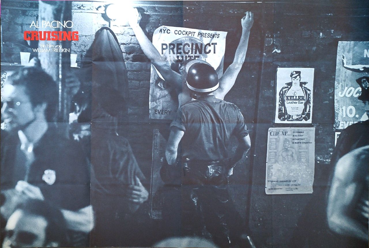 Based on the 1970 novel by Gerald Walker, about a cop who goes undercover in the leather scene in New York to catch a serial killer targeting gay men. "Cruising" was widely protested at the time of its release by gay rights groups for its depiction of homosexuality as intrinsically linked to violence, but has since been reconsidered as one of the few mainstream Hollywood movies to depict queer life in New York before the AIDS crisis, as well as one of the few movies to address police discrimination and brutality towards homosexuals.
