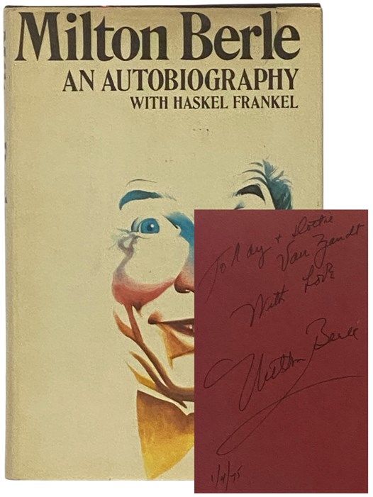 New York: Delacorte Press, 1974. 3rd Printing. Hard Cover. Very Good/Very Good. 9x5x1. Signed by author. 3rd printing. Inscribed and signed by author on front endpaper ('To Ray & Dottie Van Zandt, With Love, Milton Berle, 1/4/75'). 1 inch closed jacket tear, jacket lightly toned. 1974 Hard Cover. vii, 337 pp. "When Milton Berle died in the Spring of 2002, The New York Times declared that the legendary comic "may have had a more profound influence on our way of life than some presidents or Nobel Prize winners." This landmark memoir, as startling today as it was when it was first published, reveals the life and times of the man known affectionately to millions as Uncle Miltie. Told with unflinching candor, here is one of the most fabled and influential show business careers of all time: from performing as a child in Vaudeville and making silent movies with Charlie Chaplin and Mary Pickford, to nightclub performances for Al Capone, working on radio during World War II, performing in Broadway musicals, and, finally, superstardom on television. Perhaps even more fascinating is Berle's scandal-ridden private life: his star-crossed love affair with a 1930's movie queen and the child they had out of wedlock, his numerous affairs with women ranging from evangelist Aimee Semple McPherson to Marilyn Monroe, and his stormy relationship with beautiful showgirl Joyce Mathews, whom Berle married twice. It is Berle's unsparing account of his life and his determination to show the world his real face that led Frank Sinatra, at the time, to call this "the gutsiest book I've read in years." Told with equal amounts of comedy and pathos, and featuring colorful appearancesby all the major stars of his day, Milton Berle is simply one of the best show business memoirs ever written.
