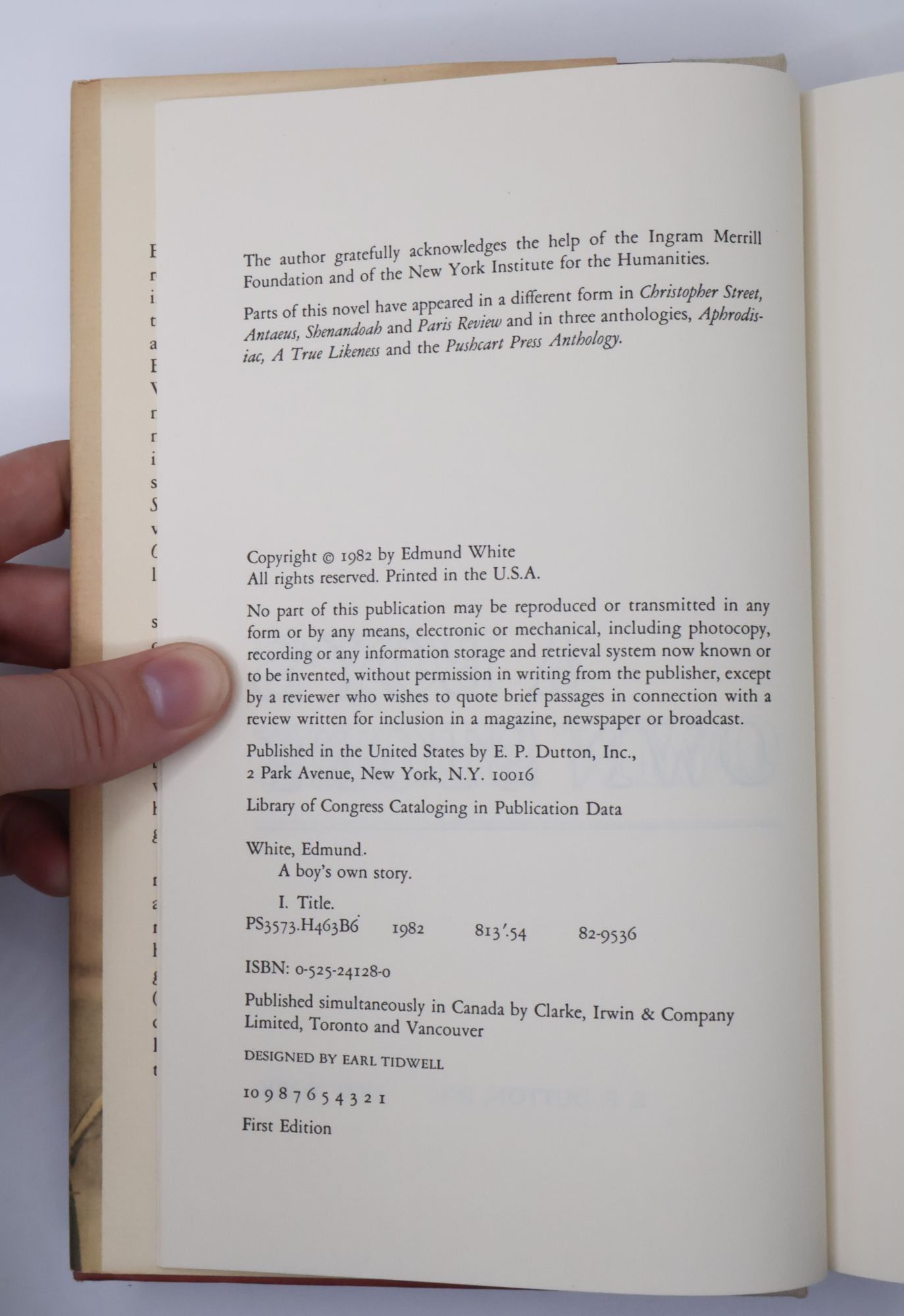 New York: E. P. Dutton, Inc, 1982. First Edition, First Printing. Hardcover. Octavo, 218 pages. In Very Good condition with a Very Good minus dust jacket. Spine tan with tan and red-brown lettering. Dust jacket protected with a mylar covering, price uncut: "$13.95." Rubbing and mild tearing along edges of dust jacket. Larger tear on top of rear fore edge. Tear across spine. Scuffing to dust jacket. Mild general shelf wear to boards. Spine slightly cocked. Minor scuffing and soiling to edges of textblock. Inscribed by White on half title page. Shelved in Case 7. 1403722. Shelved Dupont Bookstore.