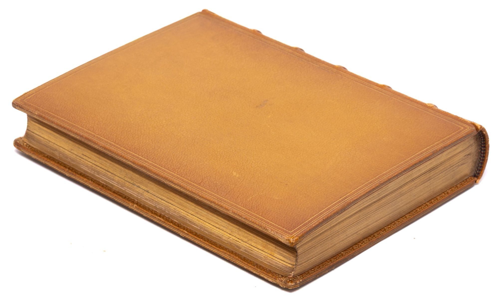 Four octavo volumes bound in one (172 x 128 mm). Plates in two states, hand colored and plain. Fifty-one black and white etchings, including frontispieces, on thirty plates. Bound by Francis Bedford in full citron morocco, covers triple-ruled in gilt, spine with five raised bands, richly decorated and lettered in gilt in compartments. Original green front covers for each volume bound in. The back covers are not present. With the bookplates of Francis Wilson and Marshall Reid Anspach on front pastedown. Also with the ink signature of Francis Wilson on the first and second blank leaves. Fine.