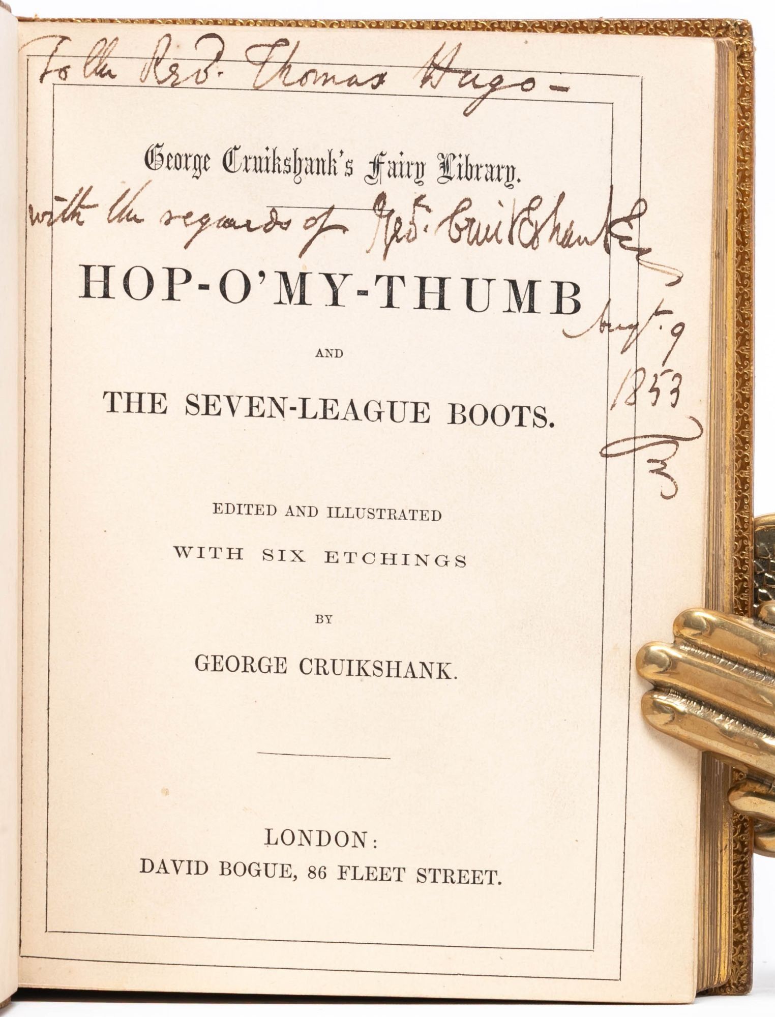 Hop-O’My-Thumb and The Seven-League Boots. London: David Bogue, [1853]. Inscribed on title-page, “To the Revd. Thomas Hugo with the regards of Geo. Cruikshank Augt. 9 1853.”