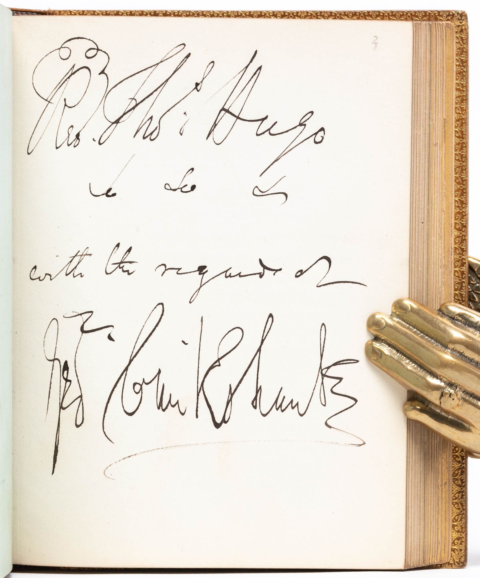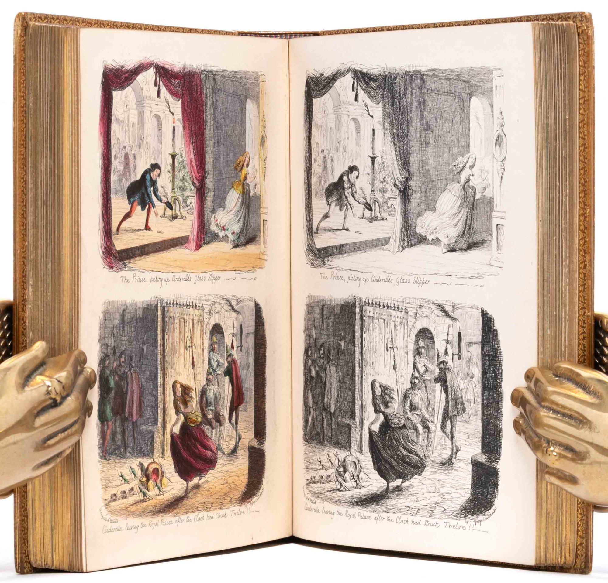 Cinderella and the Glass Slipper. London: David Bogue, [1854]. Inscribed on the recto of the list of illustrations, “Revd. Thos. Hugo...with the regards of Geo. Cruikshank.”