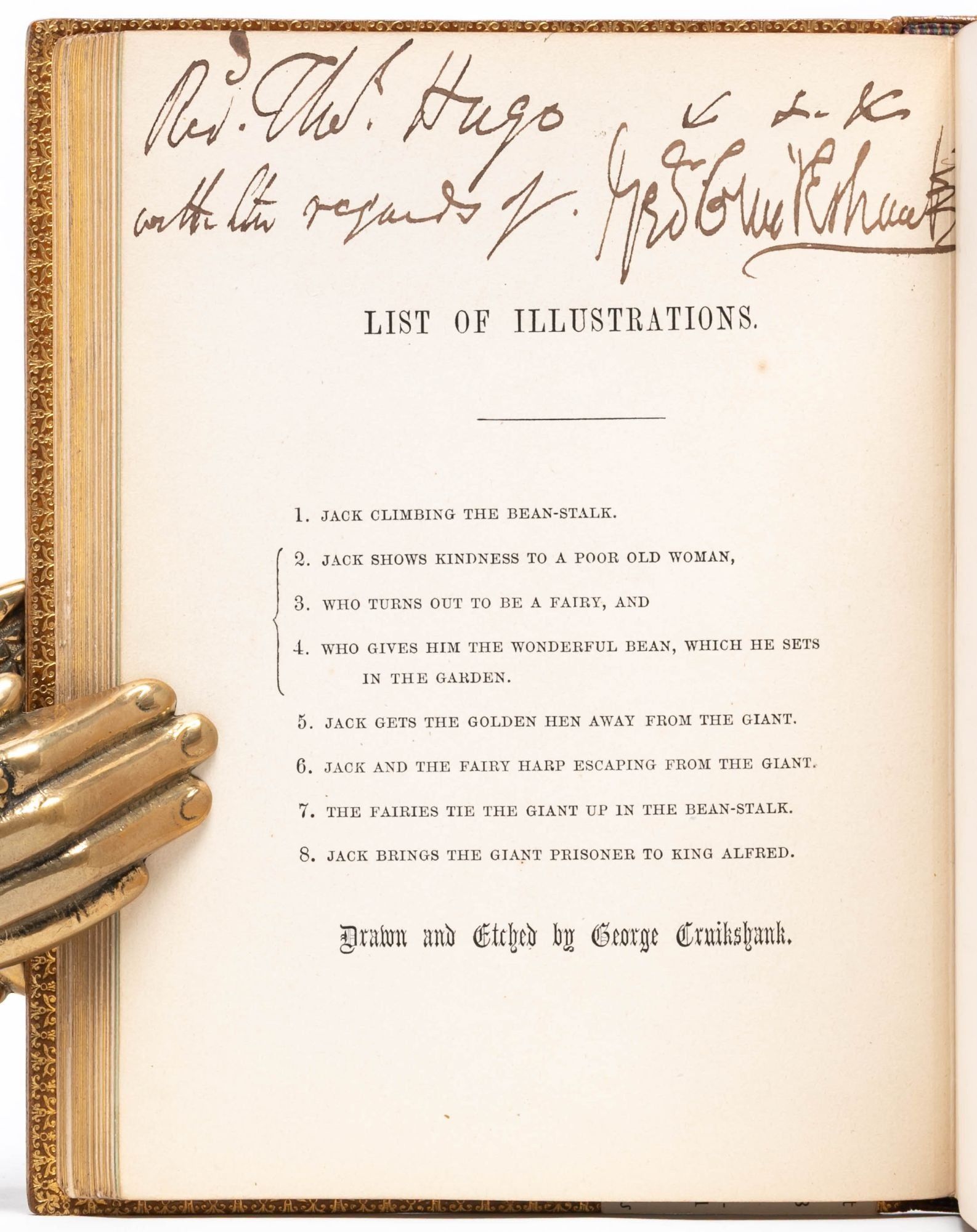 The History of Jack & the Bean-Stalk. London: David Bogue, [1854]. Inscribed on the list of illustrations, “Revd. Thos. Hugo with the regards of...Geo. Cruikshank.”