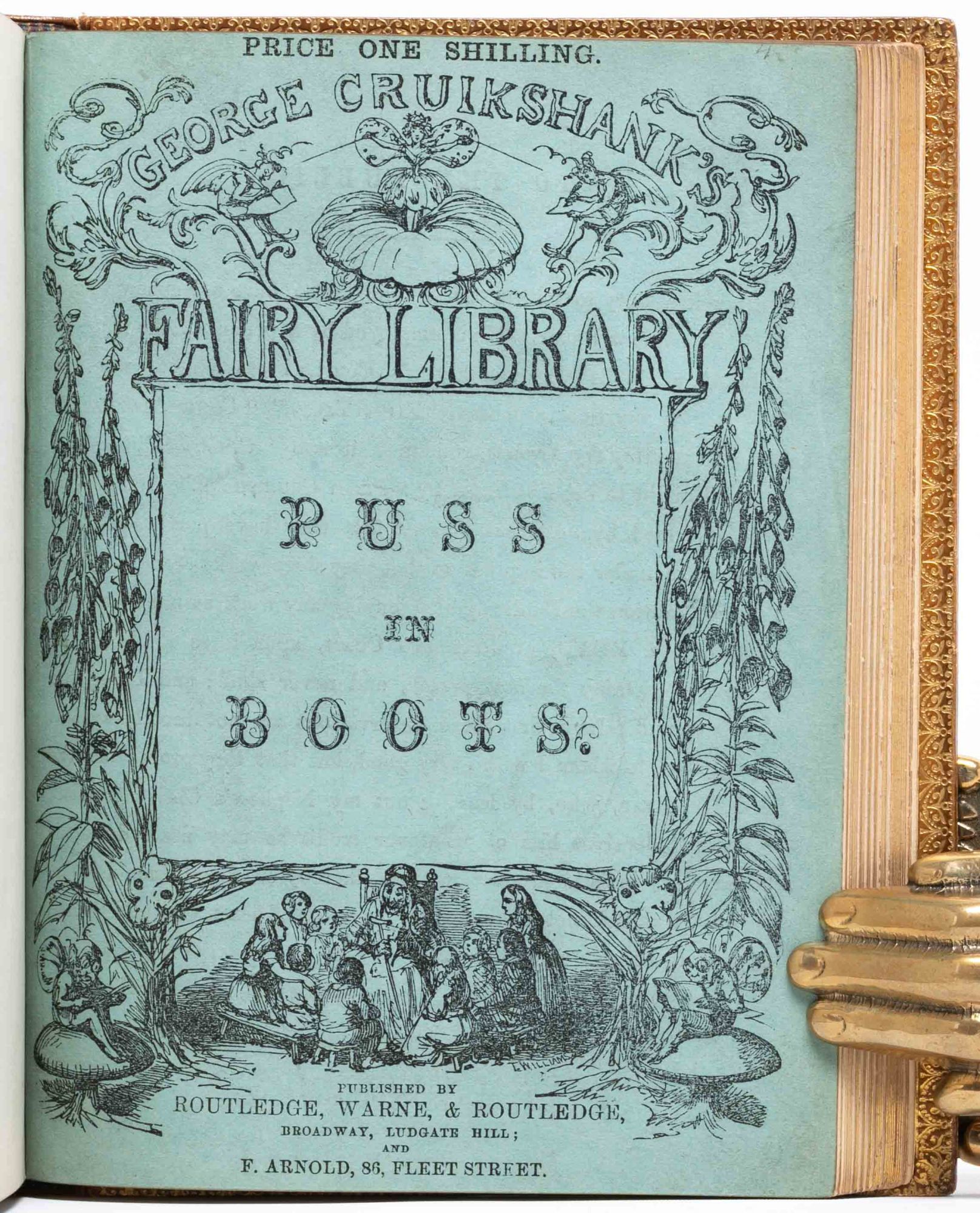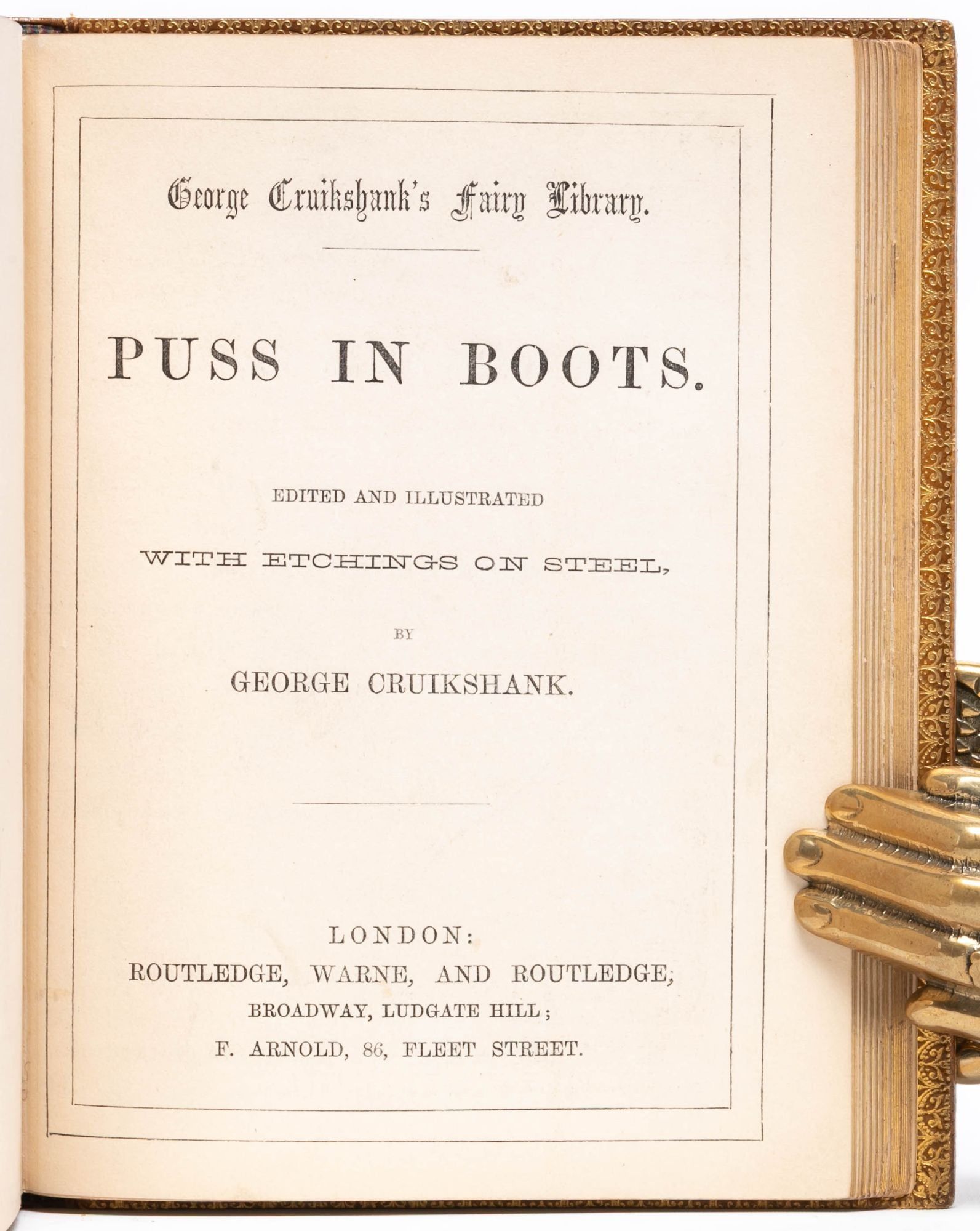 Puss in Boots. London: Routledge, Warne & Routledge… F. Arnold, [1864]. With the notice “To the Public” on the inside of the front cover repeated on separate leaf in different type, and no list of plates. Cohn notes that Puss in Boots “is extremely rare.”