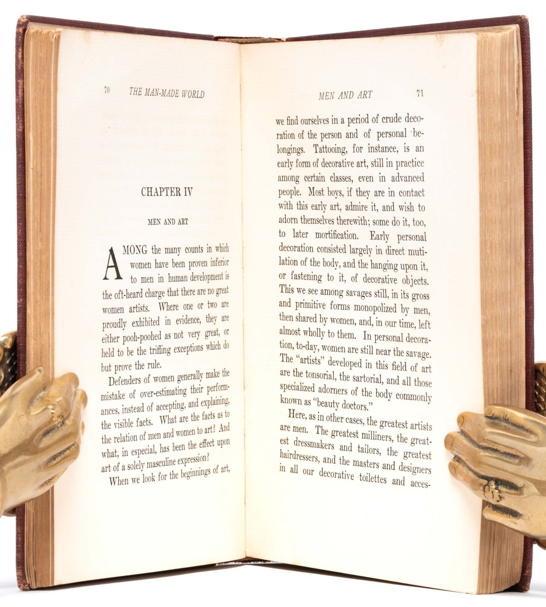 In Gilman’s words, the Androcentric Theory supposes that men are the true form of humanity and women developed from men (e.g., Eve from Adam’s rib). In contrast, Gilman proposes the “Gynæcocentric Theory,” which supposes that “the female is the race type, and the male, originally but a sex type, reached a later equality with the female, and, in the human race, became her master for a considerable historic period,” (pp. 7-8). Gilman writes, “When we learn to differentiate between humanity and masculinity, we shall give honor where honor is due,” (p. 8).