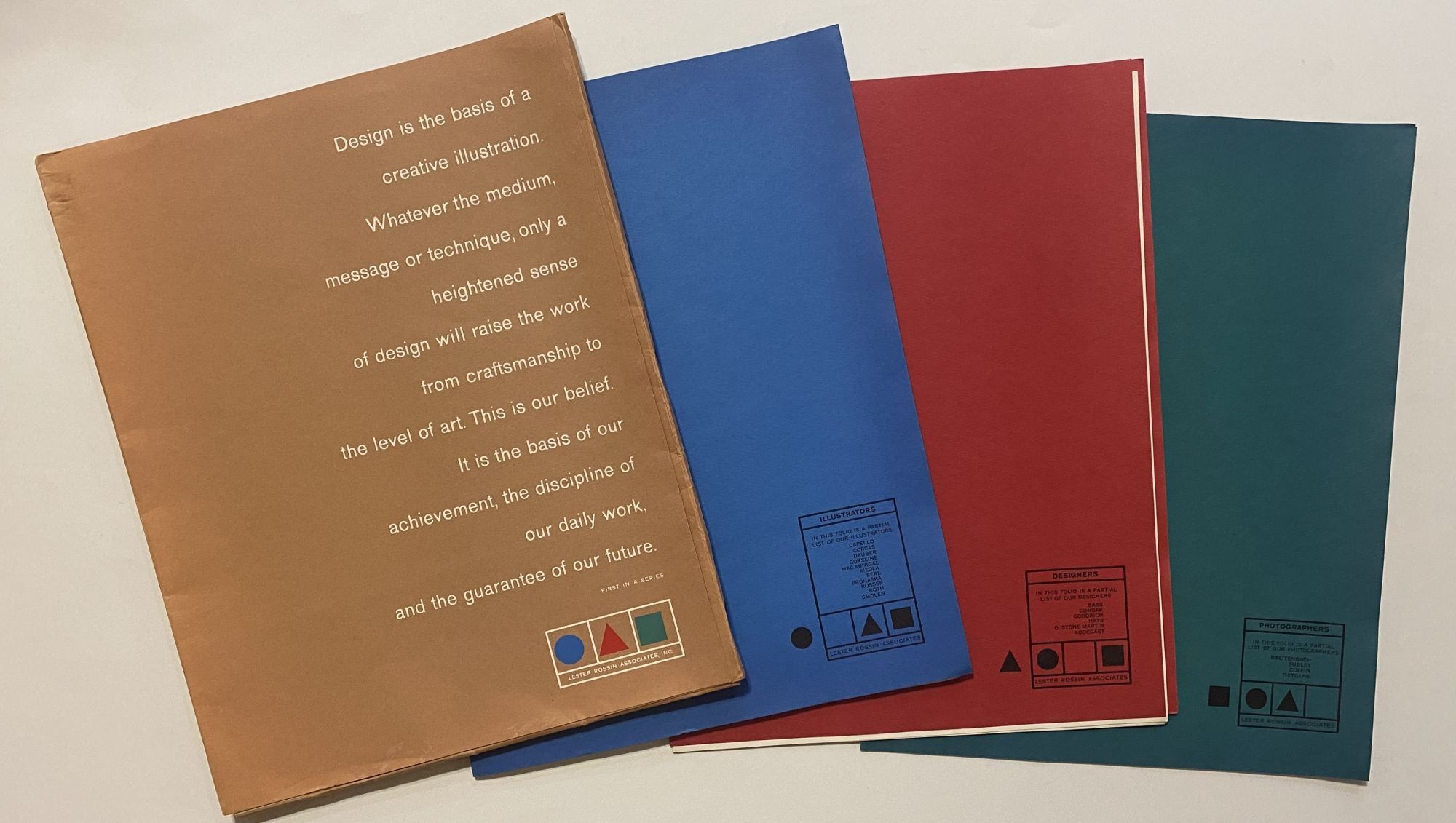New York: Lester Rossin Associates, 1958. Very good. 4to (295 x 230 mm). Original 4-flap portfolio of brown pictorial paper, containing three folders of bifolium sample illustrations, designs, and photographs, loose as issued (collated complete). Portfolio margins and folds with a little wear and creasing, contents in excellent state. "MAD MEN" ERA GRAPHIC DESIGN, BEING A PROMOTIONAL PORTFOLIO FOR A NOTED NYC ADVERTISING AND MARKETING AGENCY. THE PORTFOLIO IS ITSELF INGENIOUSLY DESIGNED, AND THE CONTENTS PRESENT A "STABLE" OF INTERNATIONALLY RECOGNIZED ILLUSTRATORS, DESIGNERS AND PHOTOGRAPHERS INCLUDING RAY PROHASKA AND D. STONE MARTIN.