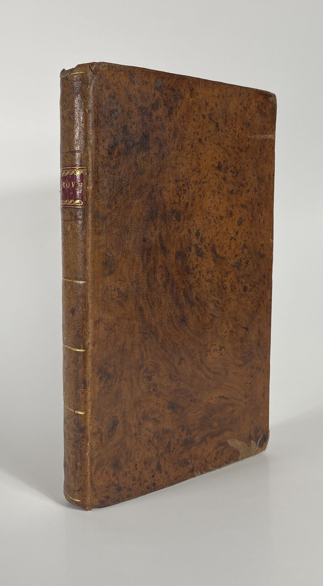 Boston: Joshua Cushing, 1808. Very good. 12mo. 196 pp. Contemporary American tree-calf, smooth spine with gilt horizontal fillets, red lettering piece ("Grove"), two original binder's blanks at front and back, sprinkled edges (text FOXED as is true with all copies, for which see images; short marginal tear on pp. 5/6; lower fore-corner of upper cover scuffed and bumped, headcap chipped). Overall an attractive copy with an intriguing provenance. AN UNUSUALLY STERN EARLY AMERICAN BOOKPLATE: "JOSHUA GREEN'S PROPERTY ☛ RETURN THIS WITH CARE."