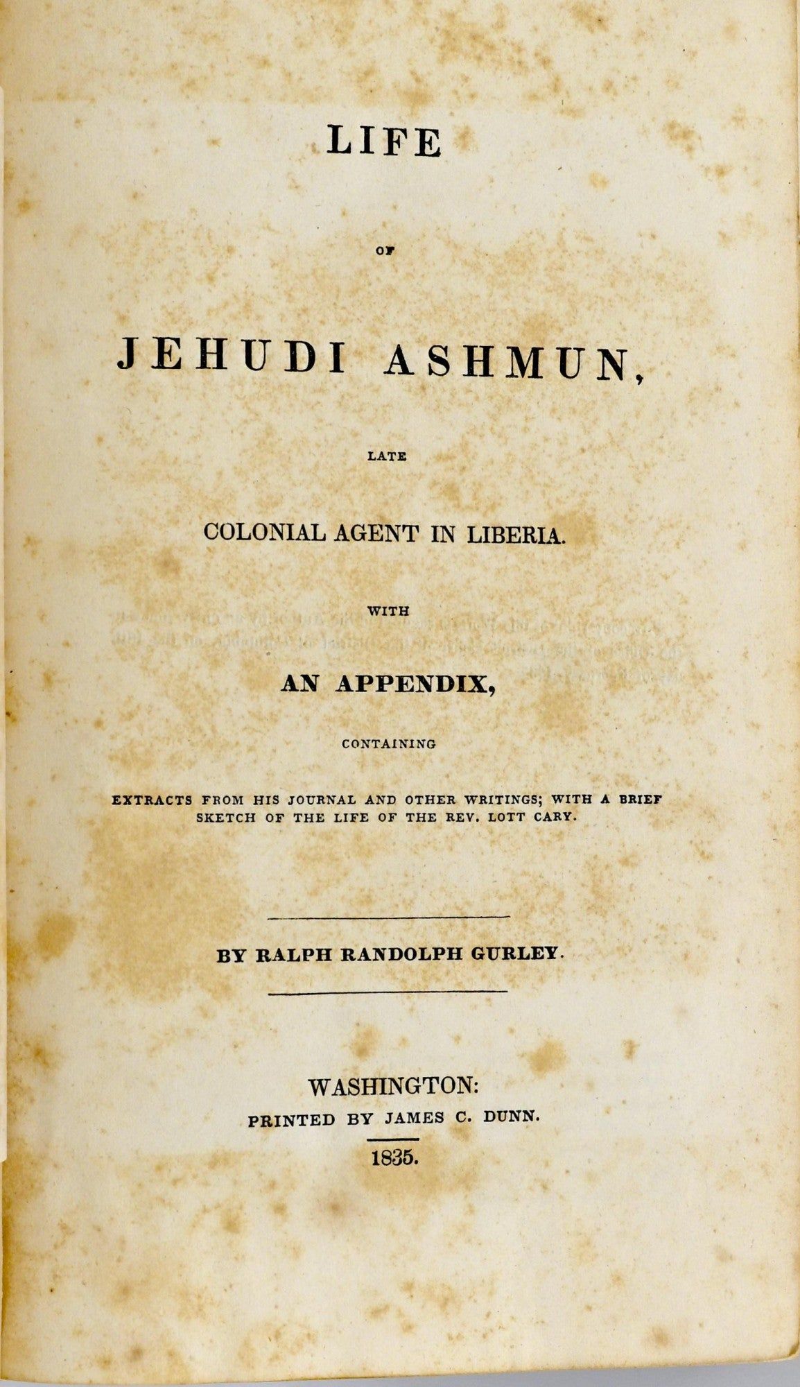 [HISTORY] LIFE OF JEHUDI ASHMUN, LATE COLONIAL AGENT IN LIBERIA WITH AN APPENDIX CONTAINING EXTRACTS FROM HIS JOURNAL AND OTHER WRITINGS; WITH A BRIEF SKETCH OF THE LIFE OF THE REV. LOTT CARY