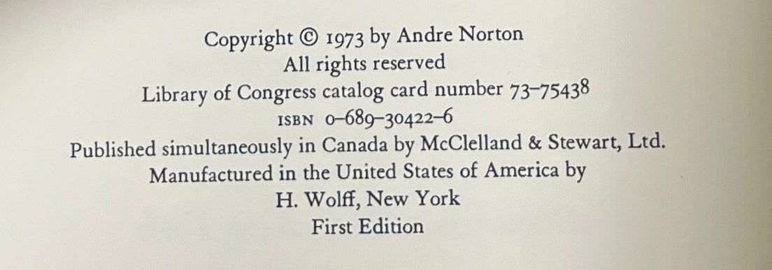 New York: Atheneum, 1973. First Edition. Hardcover. Fine/Fine. Fine in a Fine jacket, unclipped ($5.95). Orange cloth with black ink lettering on the spine and front board. Square and firmly bound, clean internally. Norton's novel featuring the Avalon of Arthurian legend.