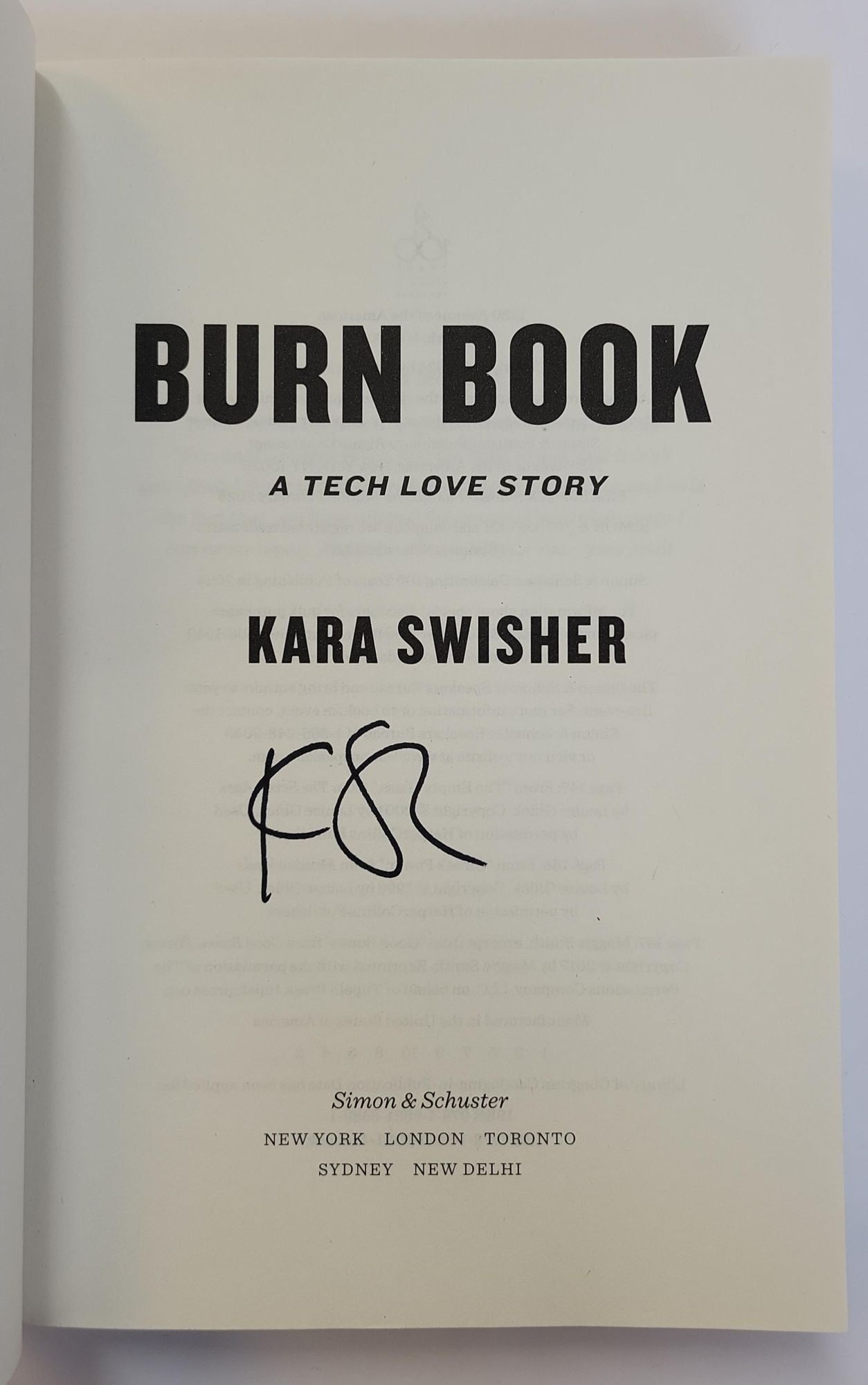 New York: Simon & Schuster, 2024. First Edition, First Printing. Hardcover. Octavo, 305 pages. In Good plus condition with a Good plus dust jacket. Spine white with pictorial face and red lettering. Dust jacket protected with mylar covering, price uncut: "$30.00." Minor general shelf wear. light scuffing and discoloration on front and back of dust jacket. Minor bumping to top of spine of dust jacket. Slight curling to dust jacket flaps. Slight edge wear to bottom of front dust jacket. Minor bumping to tail end of spine. Light chipping on top edge of front board. Light chipping to top edge of text block. Minor creasing to corners of some interior pages. Signed flat by Swisher on title page. Shelved in Technology. 1403948. Shelved Dupont Bookstore.