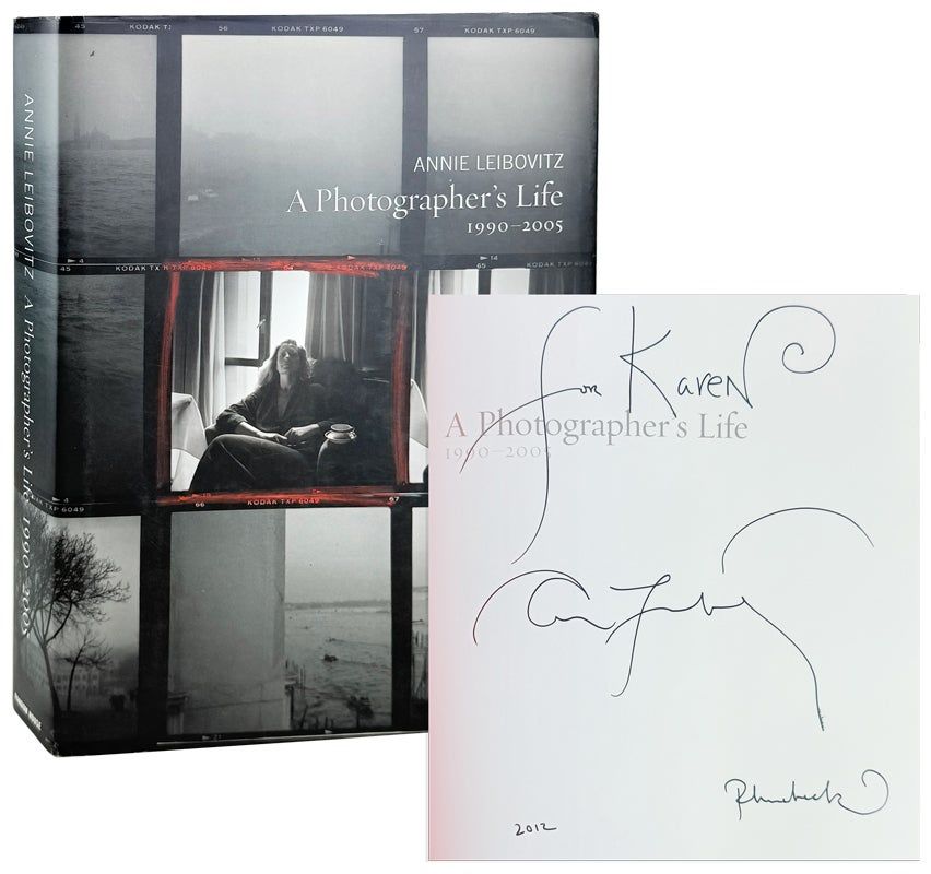 New York: Random House, 2006. Very Good -/Very Good. New York: Random House, 2006. Later Printing. Folio; unpaginated. Publisher's photographic dust jacket with $75.00 price intact; navy boards; red endsheets. Chiefly photographic illustrations, some in color. Dust jacket bumped; spine cocked. Boards bumped. Binding sound. An overall Very Good or better copy. Inscribed "For Karen." Signed and dated by Leibovitz on half title page.