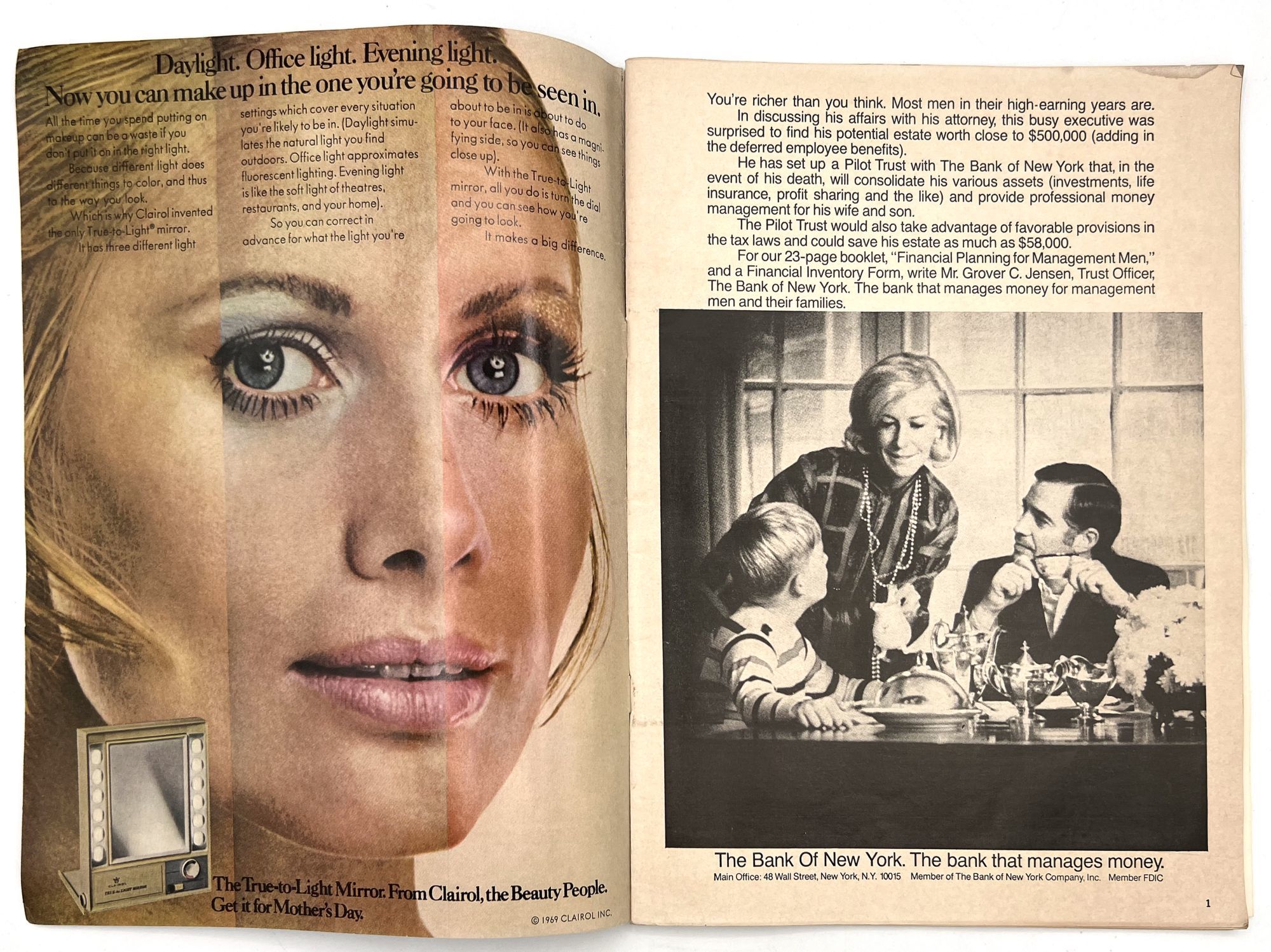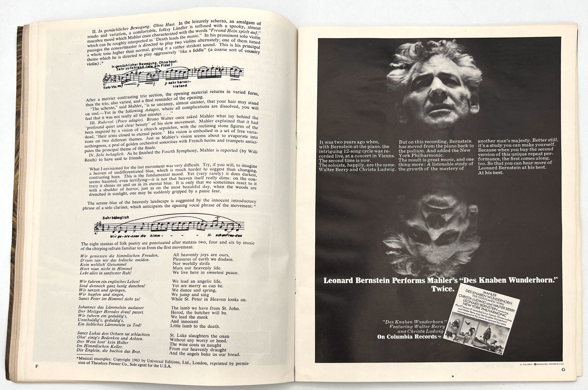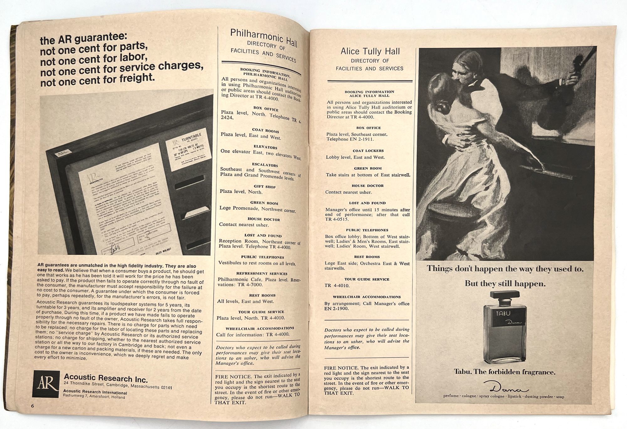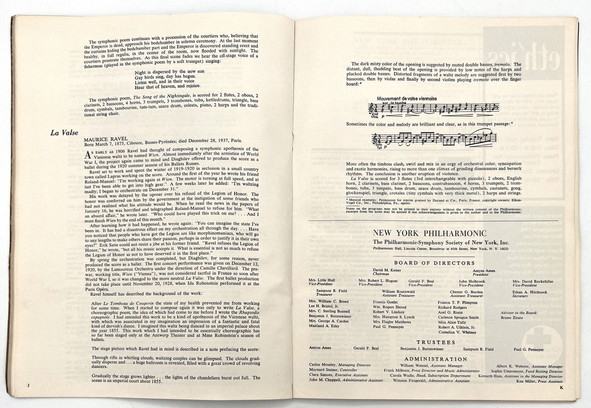 New York, New York: Lincoln Center for the Performing Arts, 1971. Very good. Toned with a couple leaves/a gathering loose.. Two (2) issues of Philharmonic Hall, a printed program promoting arts events at Lincoln Center. These cover the years 1969-1970, and 1970-1971. Note the heavy hitters listed in the Lincoln Center Council (Balanchine, Bing, Rodgers), and under the New York Phil musicians (Julius Baker, David Nadien), as well as many others important to 20th century arts and culture. Includes features on the music performed, the maestro Leopold Stokowski, lists of donors and patrons, a local restaurant guide, and more. Both measure approx. 11" by 8.25", approx. 44 pp., illus., in original illus. wrps.