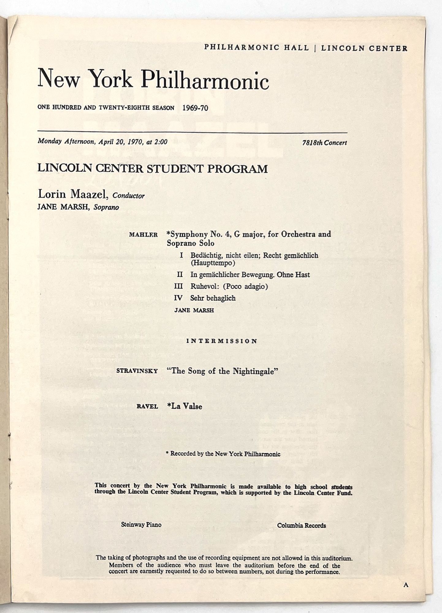 - New York, New York: Lincoln Center for the Performing Arts, 1971